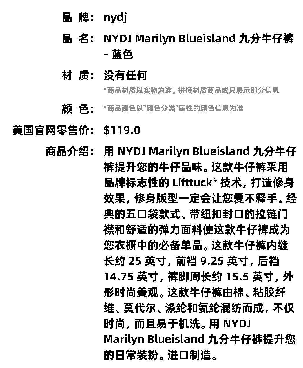 Укороченные джинсы NYDJ Marilyn Blueisland NYDJ — синий американский аутлет, прямые волосы