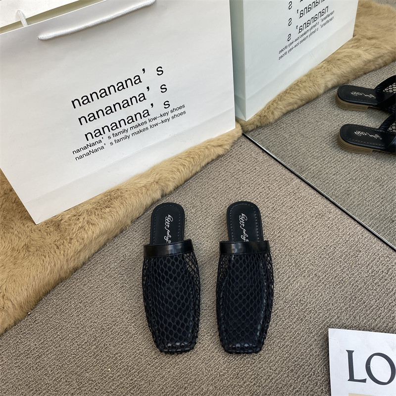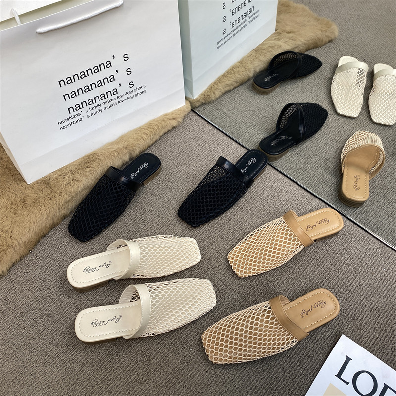 Na Nana's Французские сандалии с полой сеткой для женщин, которые можно носить как верхнюю одежду, сандалии на плоской подошве, тапочки, полутапочки с открытым носком