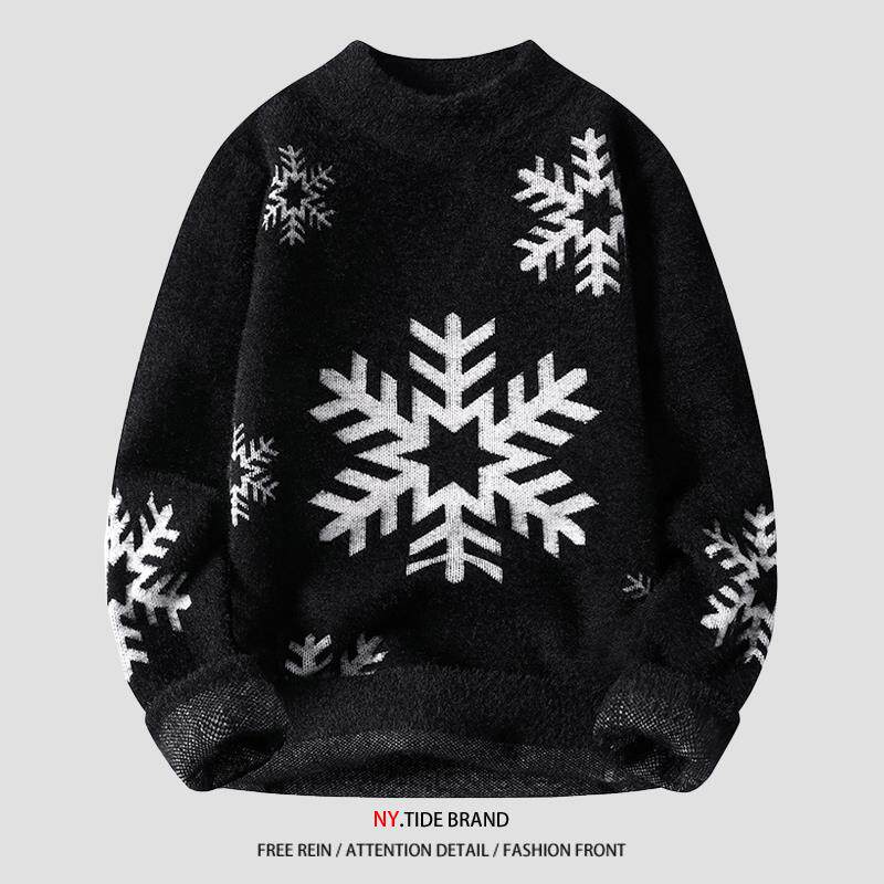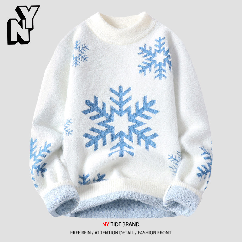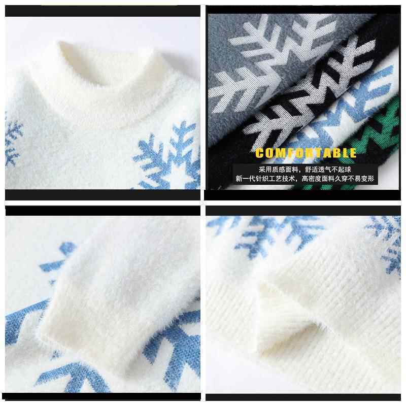Элитный бархатный трикотажный демисезонный утепленный кашемировый свитер для отдыха, со снежинками, оверсайз