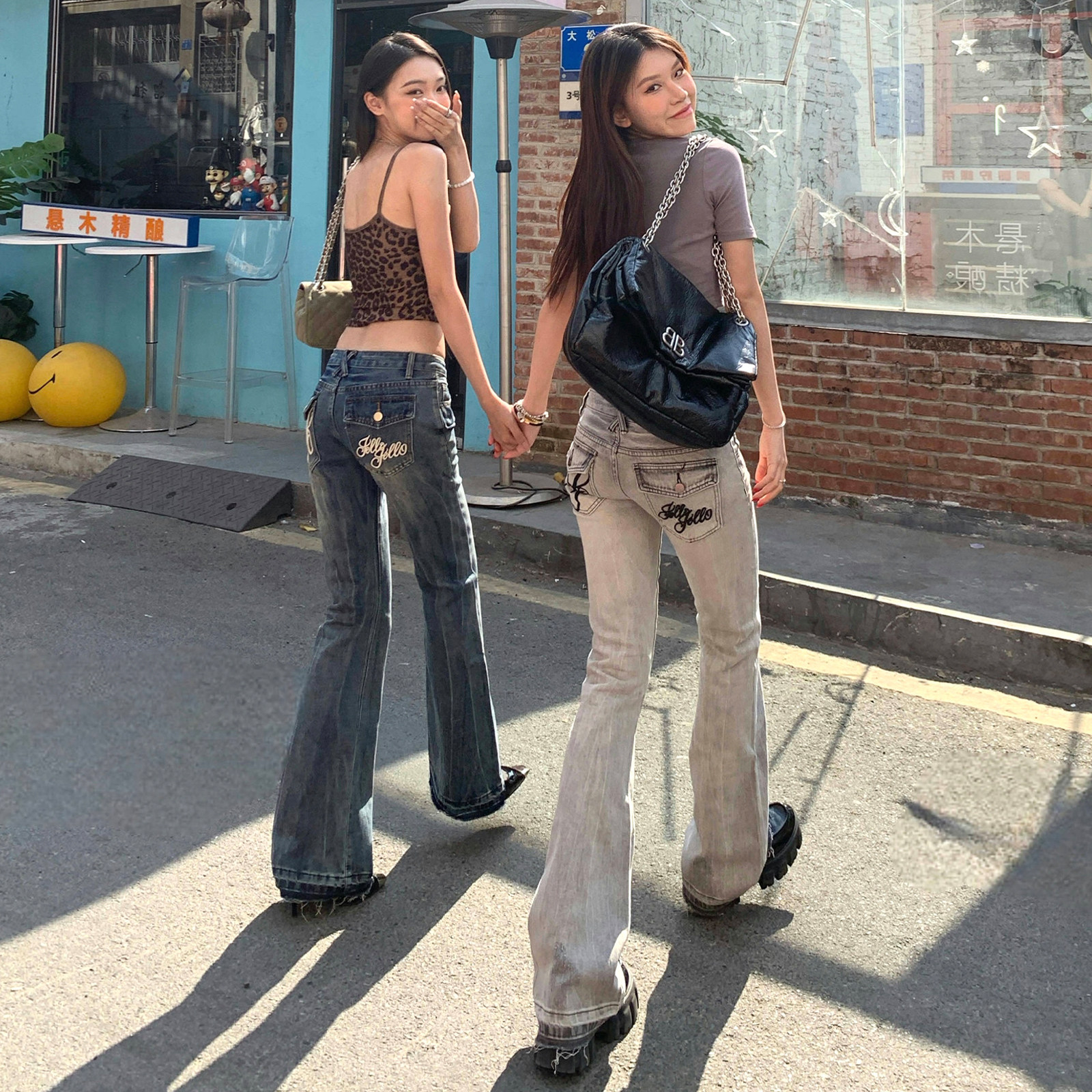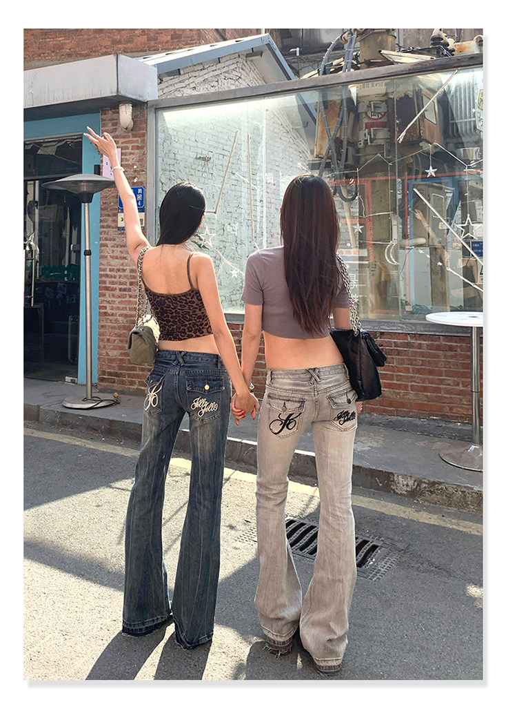 Джинсы, летние штаны, штаны-клёш, с вышивкой