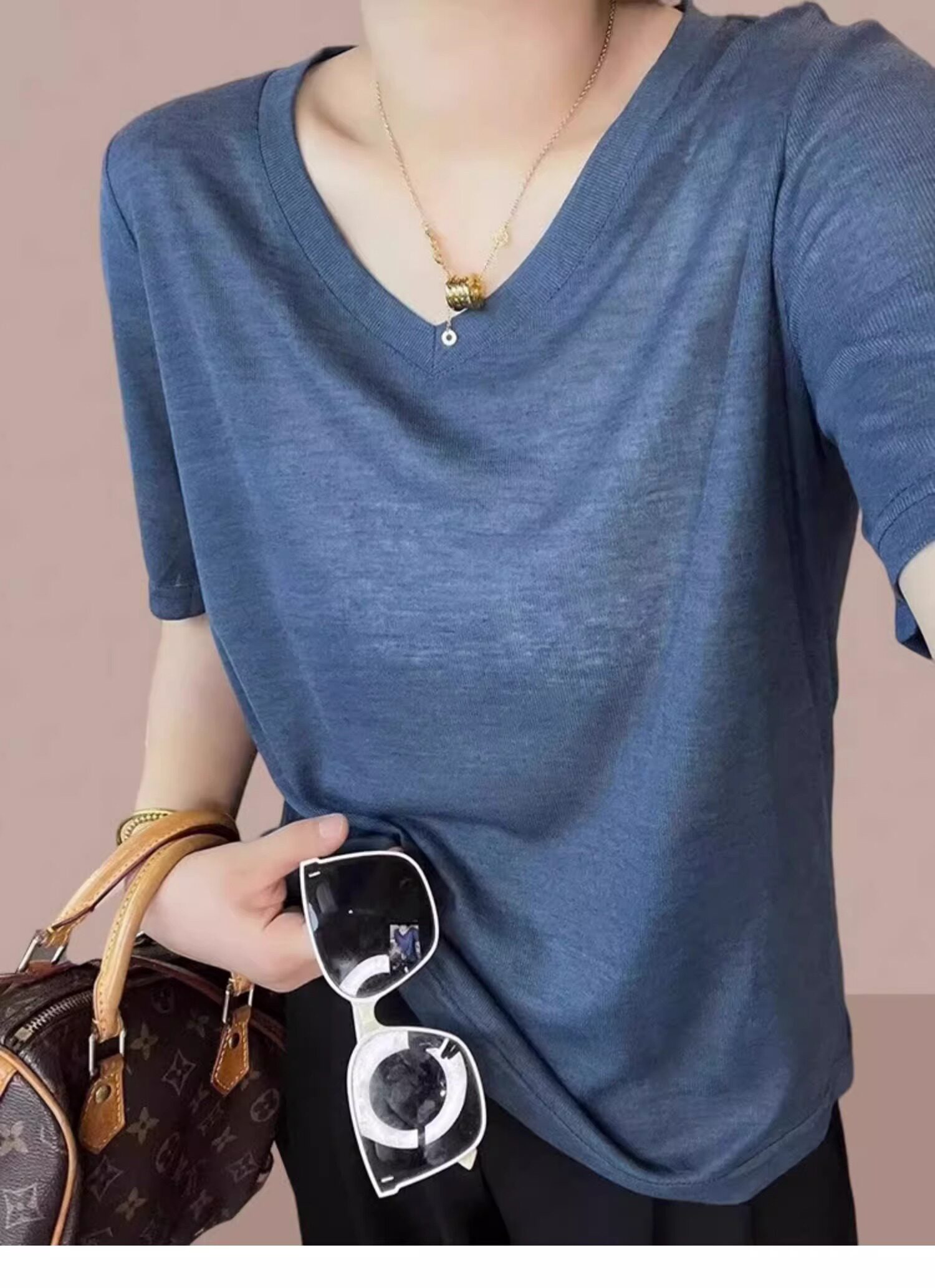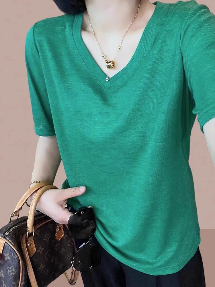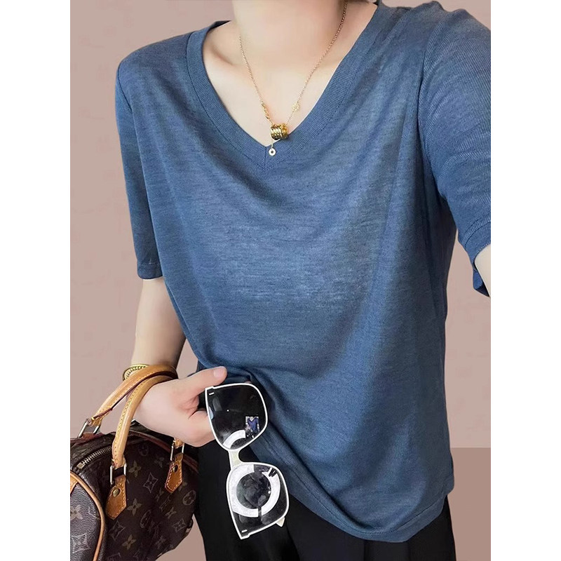 Маска для лица, летняя тонкая футболка, V-образный вырез