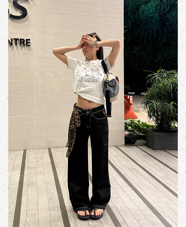 Джинсы, небольшие дизайнерские штаны, повседневные брюки, свободный прямой крой