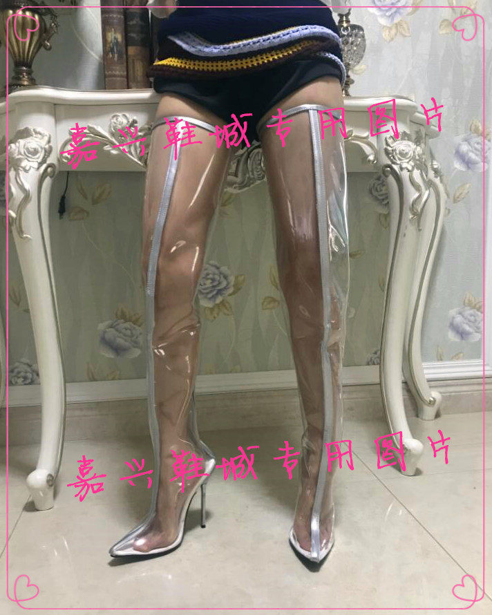 Прозрачные сапоги на металлическом каблуке высотой 12 см. Прозрачные ботфорты. Прозрачные сапоги на высоком каблуке K301.