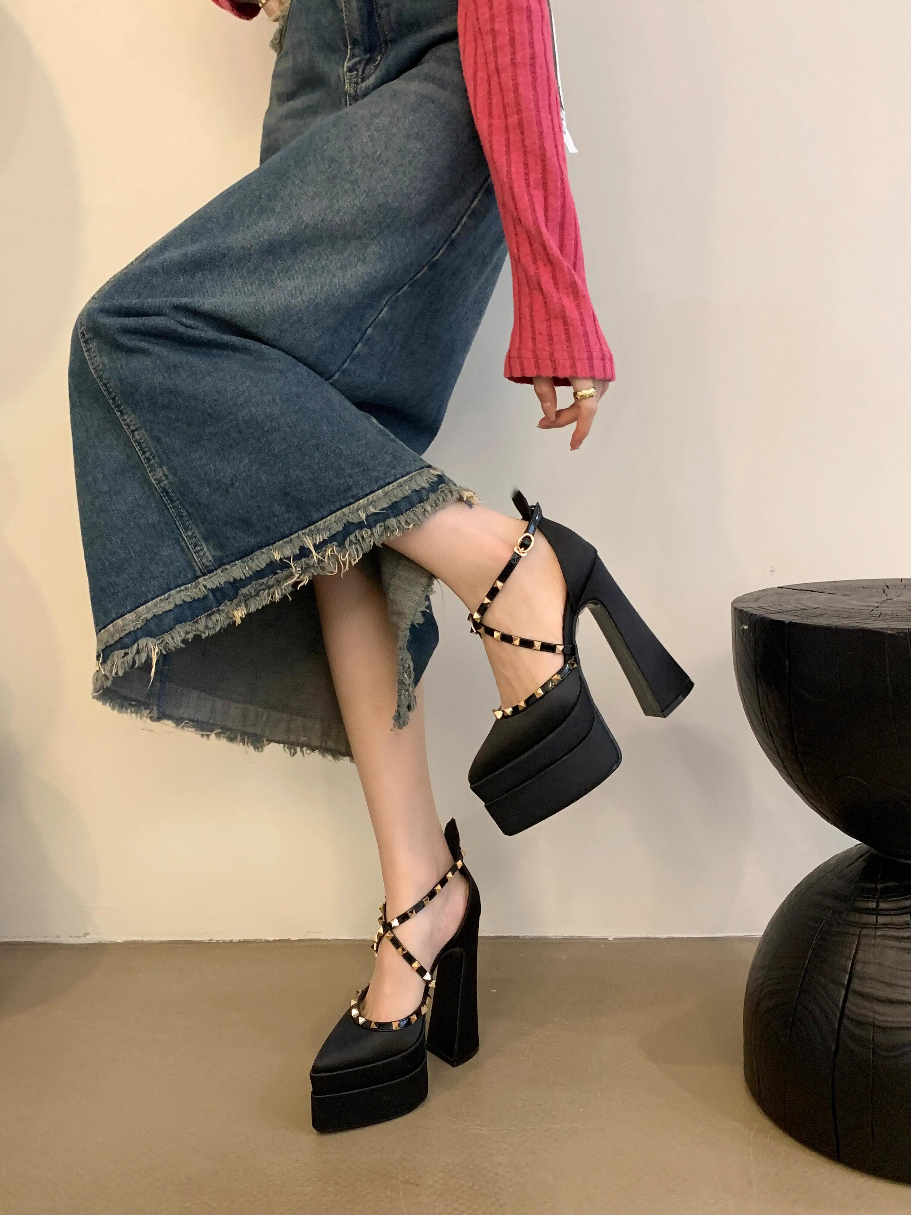 Сексуальный водонепроницаемый ремень на высоком каблуке с заостренным носом, сандалии, манекен головы, 15см
