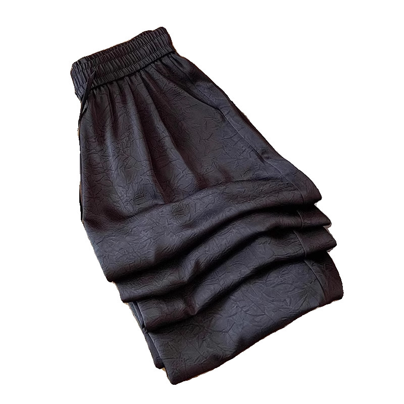 Весенние шелковые штаны, китайский стиль, высокая талия, свободный прямой крой