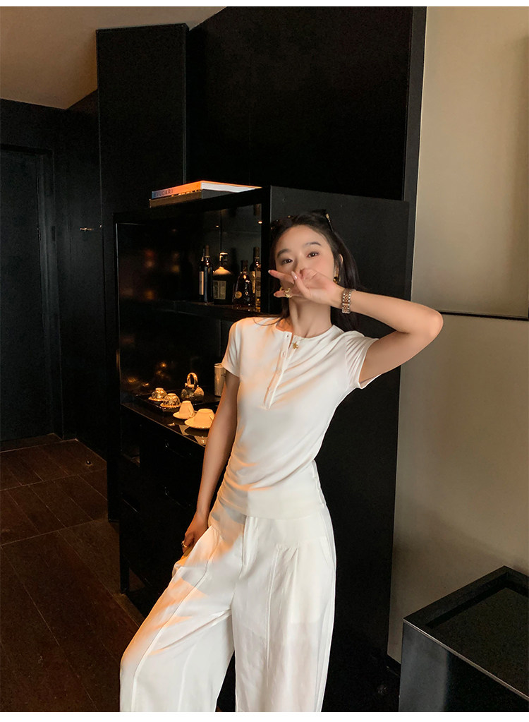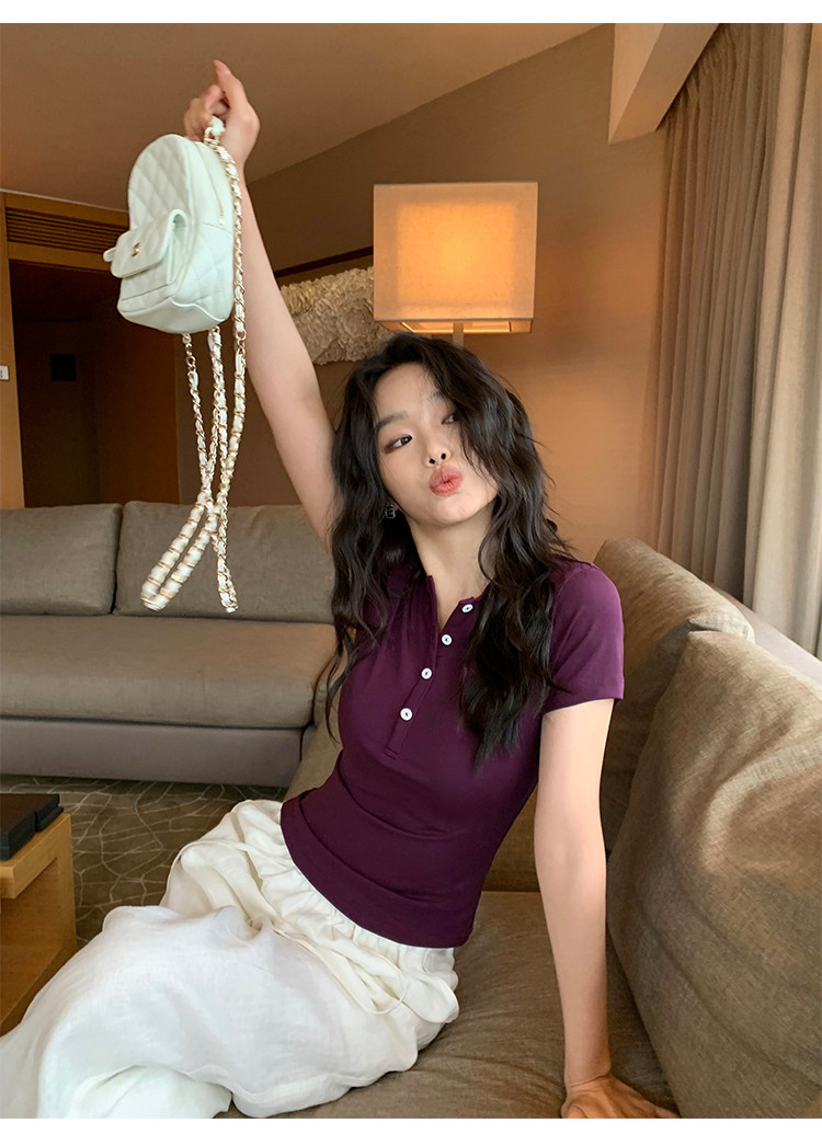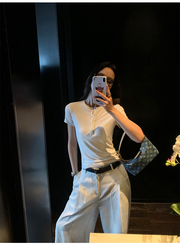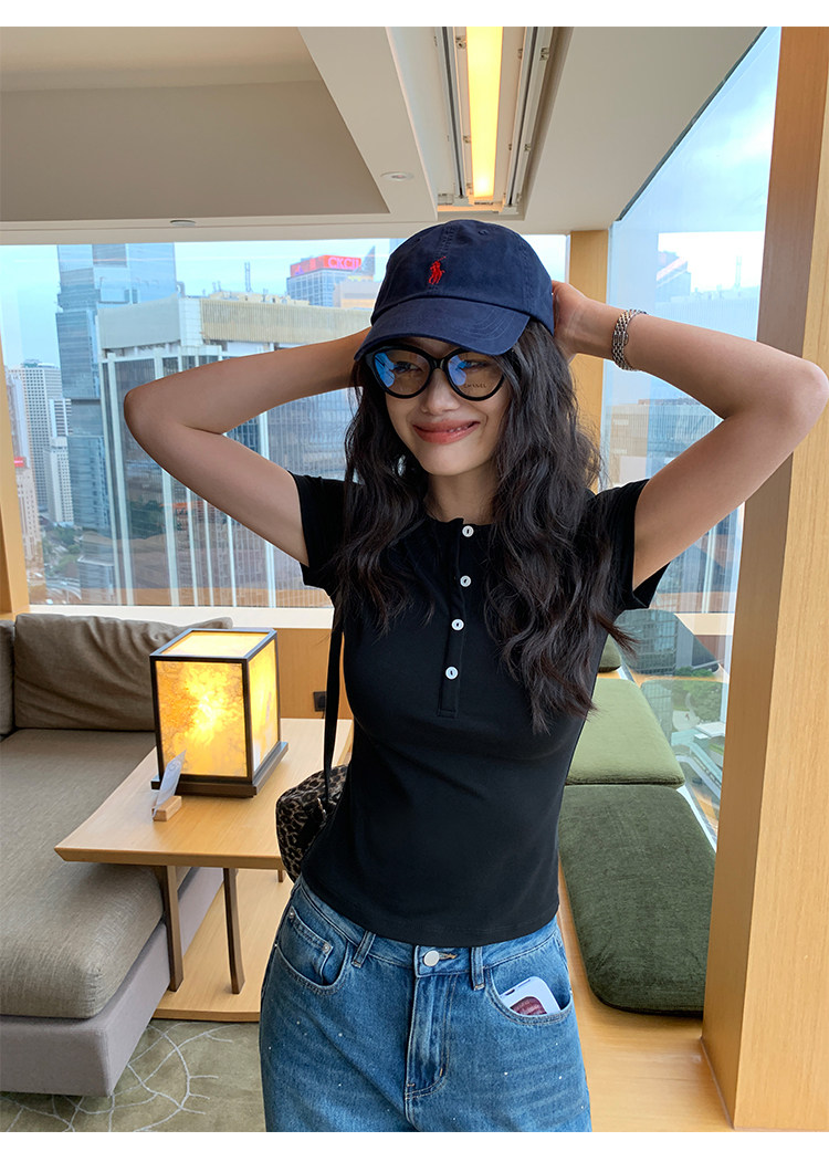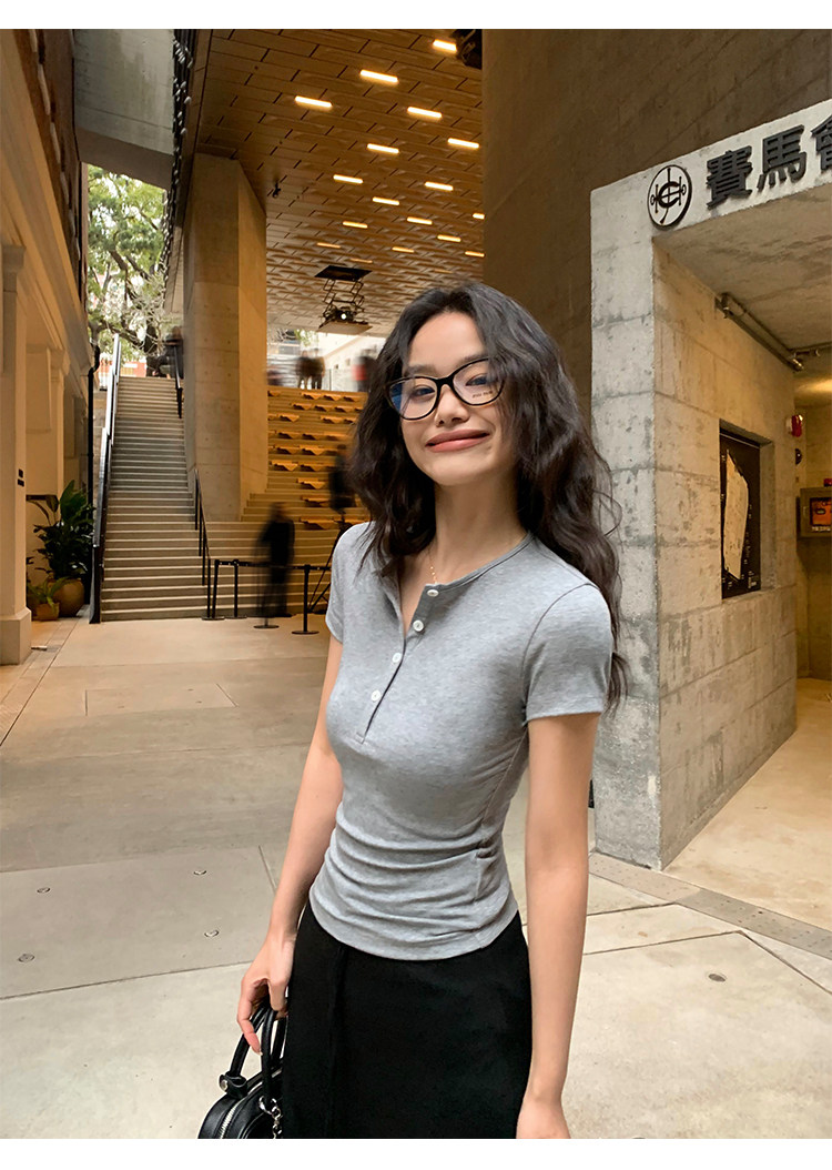 Футболка Pusumede Cloud | Женская футболка с коротким рукавом Tencel Henley, тонкий эластичный вязаный топ на правое плечо