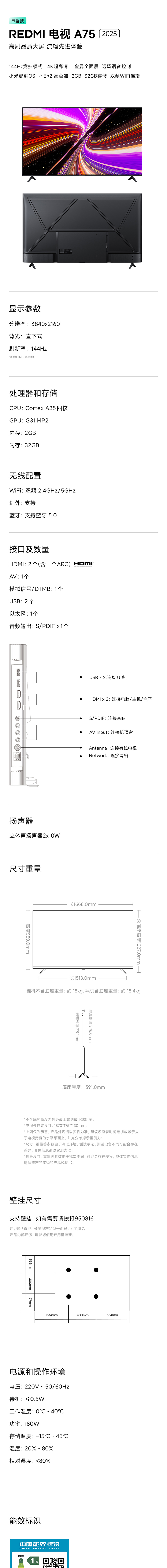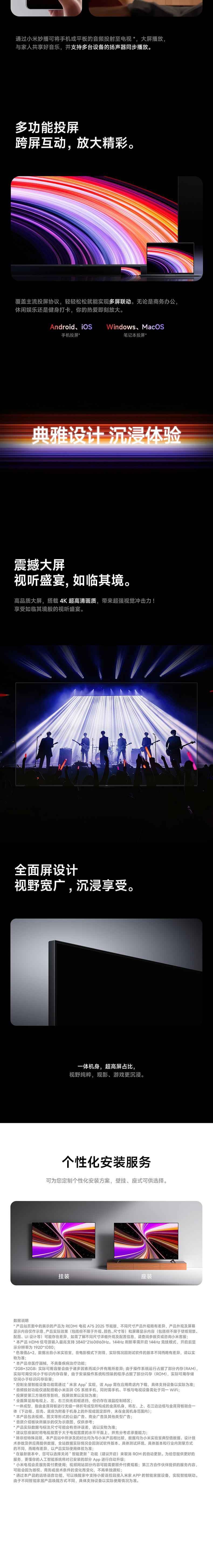 Xiaomi Redmi A75-дюймовый 144 Гц высокопроизводительный ЖК-телевизор с высокой четкой для старой субсидии 2025