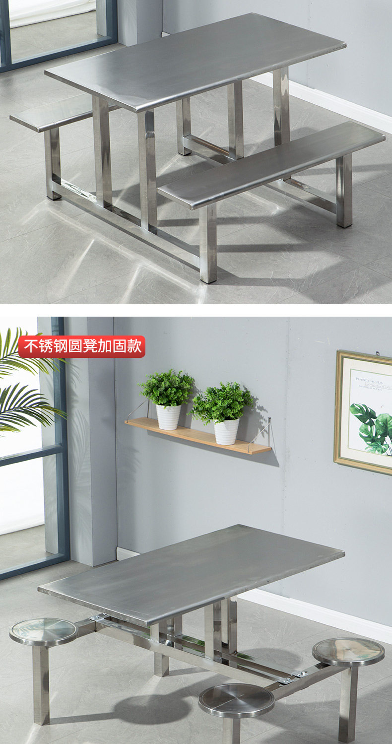 Школьная столовая из нержавеющей стали цельный обеденный стол и стулья 4 человека 6 человек 8 человек заводской столовой ресторан на стол и комбинация стула.