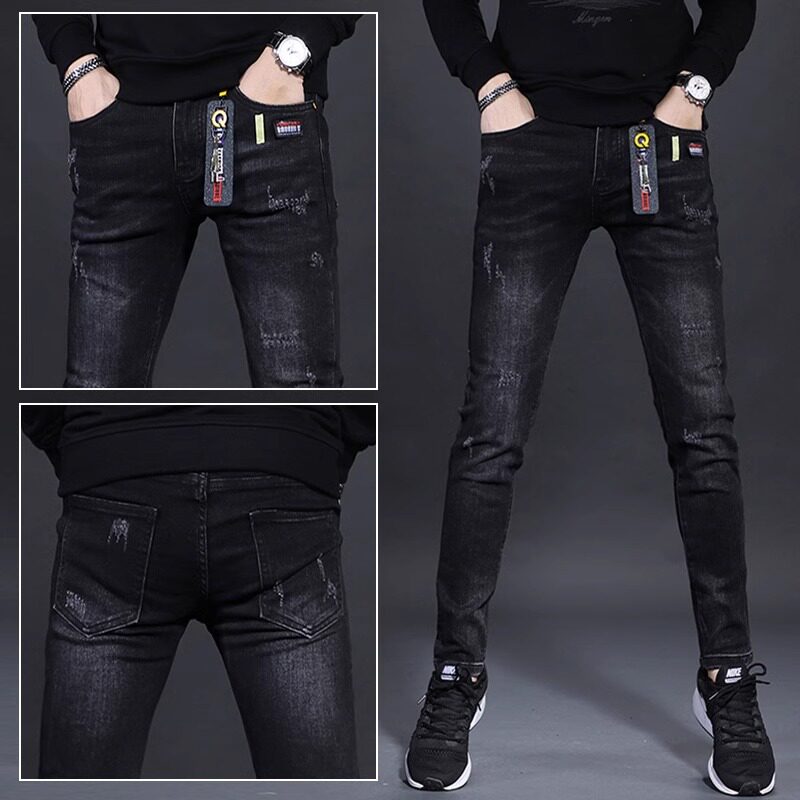 Элитные модные черные джинсы, эластичные штаны, городской стиль