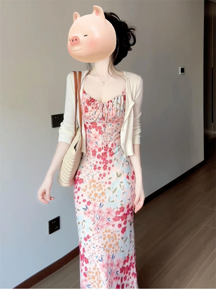 Розовая летняя длинная юбка, французский стиль, цветочный принт, в цветочек, подходит для подростков, 2025 года, с акцентом на бедрах