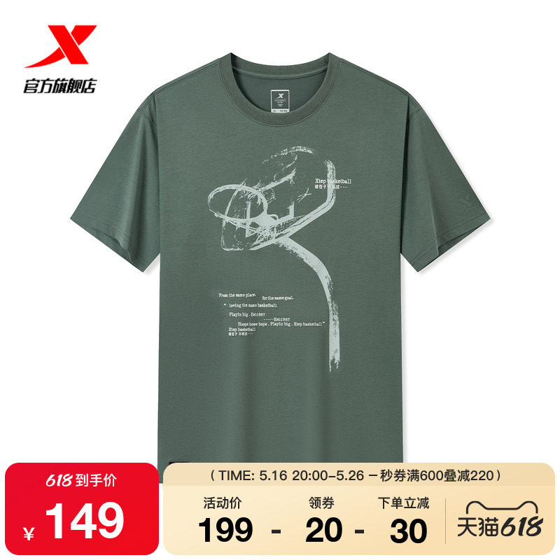 Xtep, мужская летняя футболка, универсальный спортивный трикотажный свитер для отдыха, 2025 года