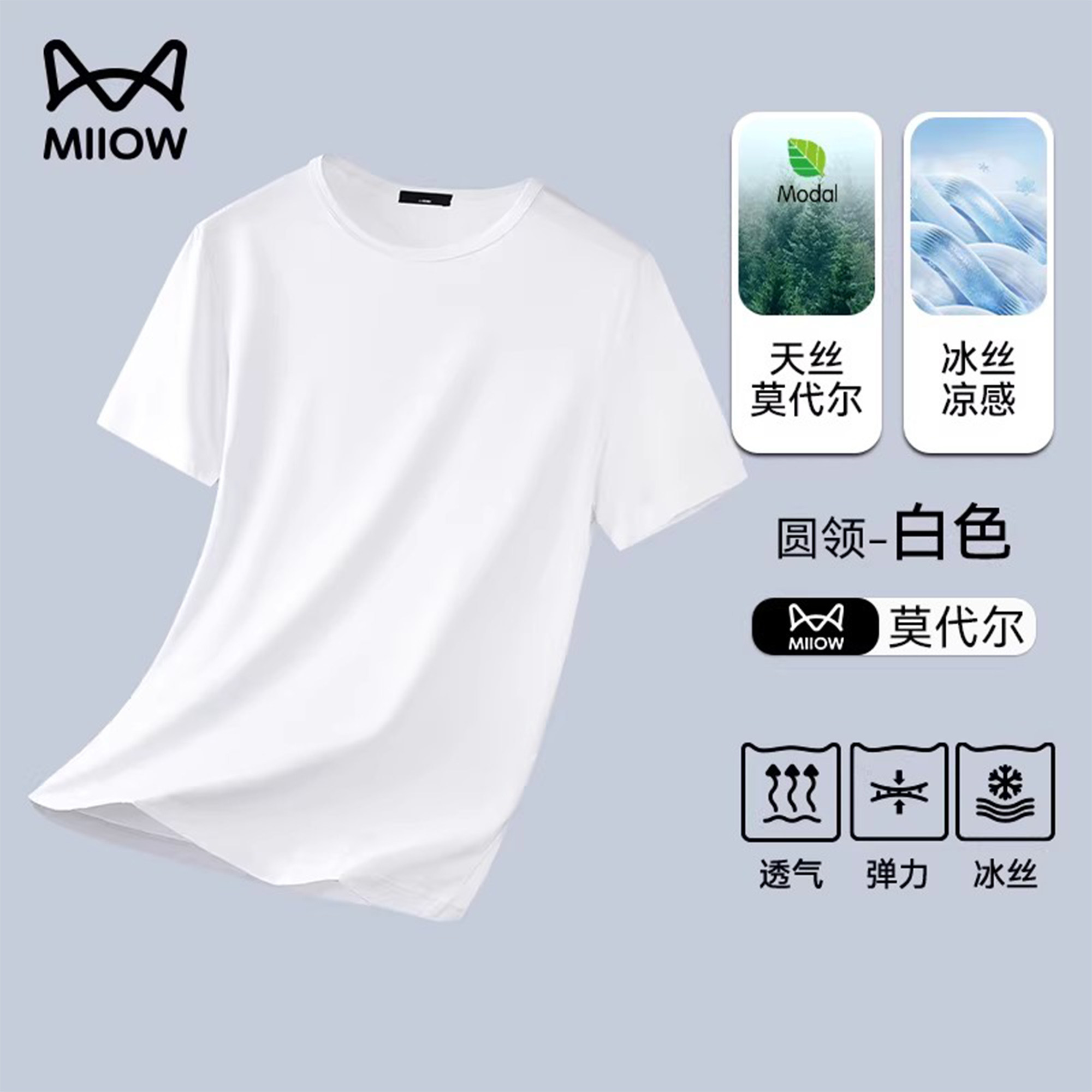 Шелковая дышащая хлопковая футболка с круглым воротником