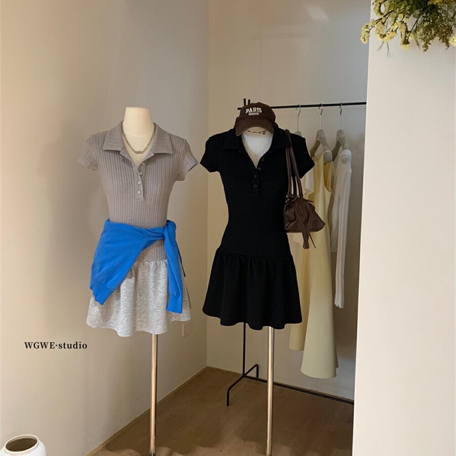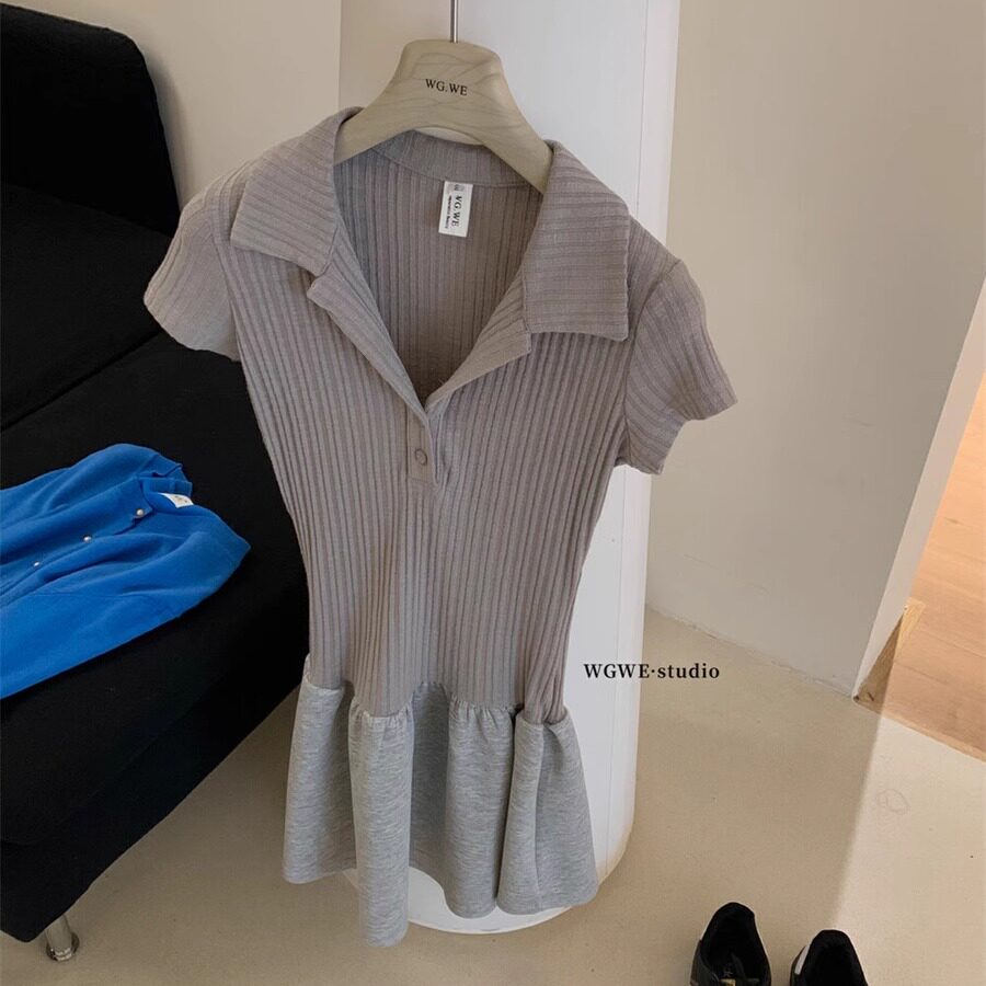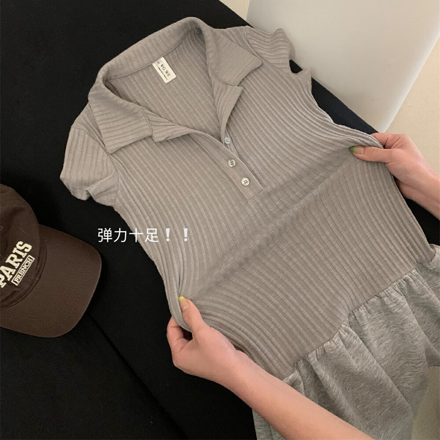 Летний трикотажный корсет, платье, в корейском стиле, короткий рукав, А-силуэт