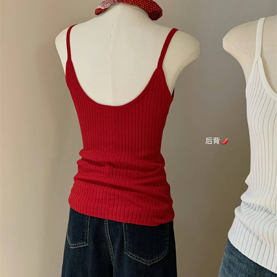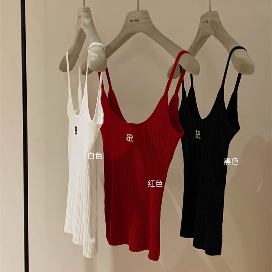 Летняя приталенная майка топ, трикотажный свитер, в корейском стиле, с вышивкой
