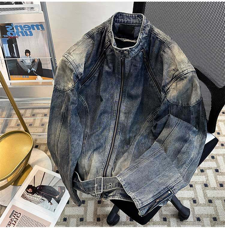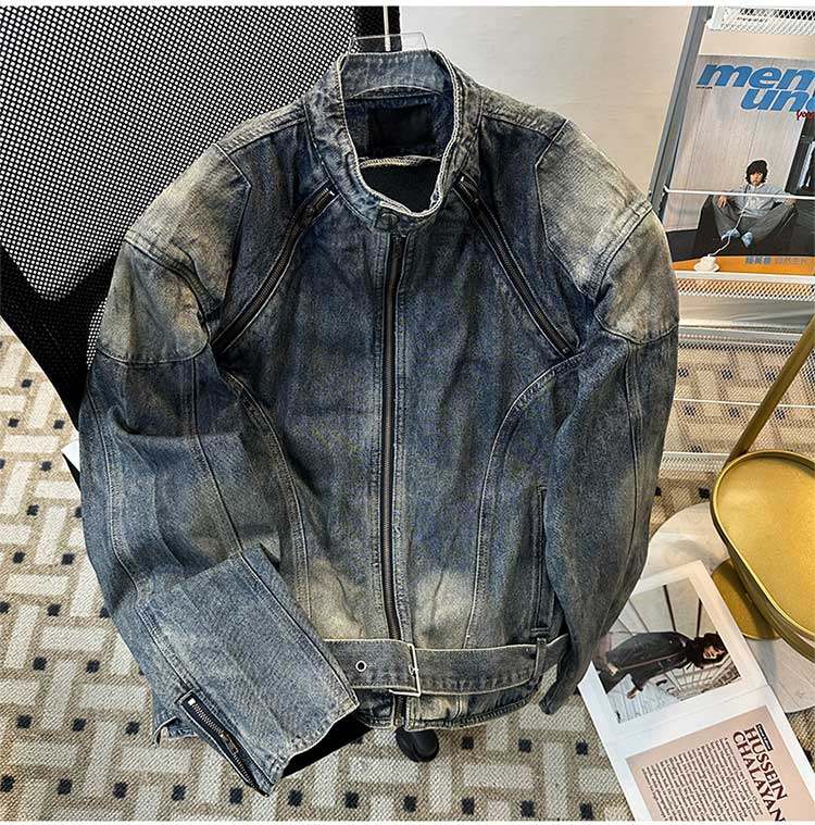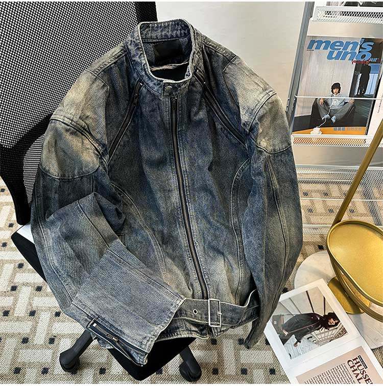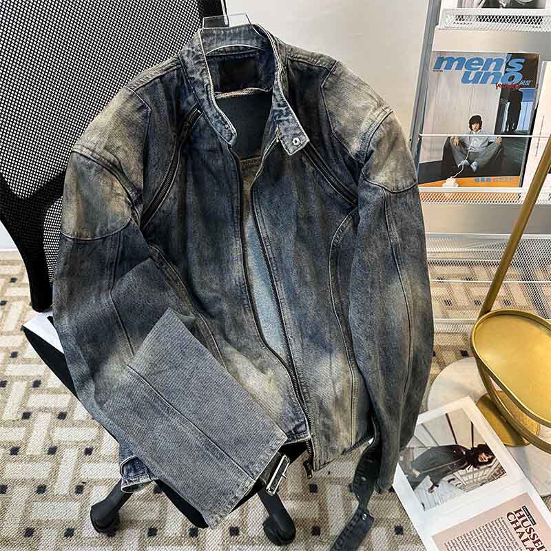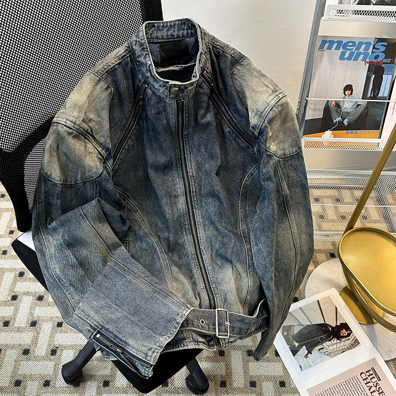 Джинсовая мужская спортивная куртка с молнией, в американском стиле, подходит для подростков