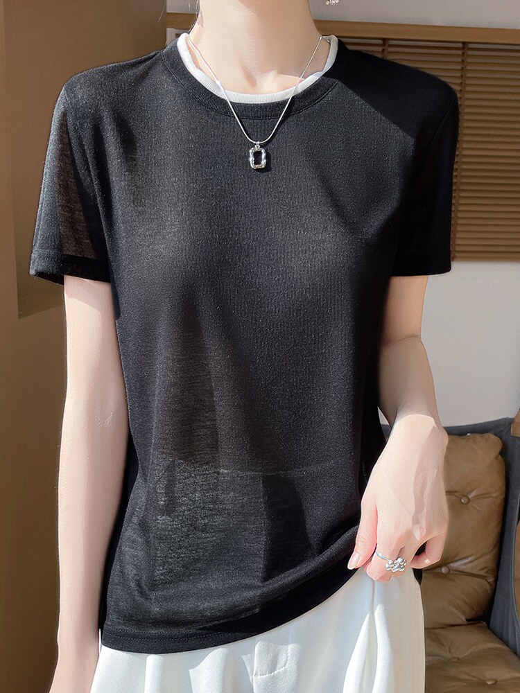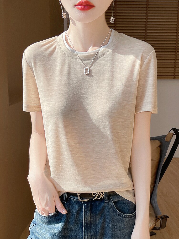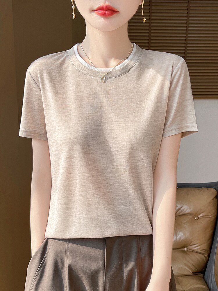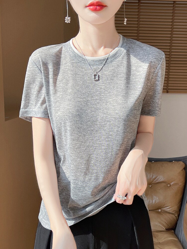 Футболка, летний базовый комплект с круглым воротником для отдыха