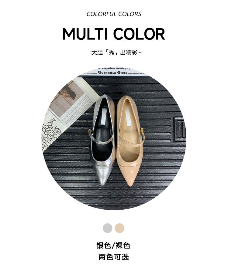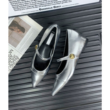 Высокая серебряная обувь с заостренным носом с низким вырезом, 5см, французский стиль, против усталых ног