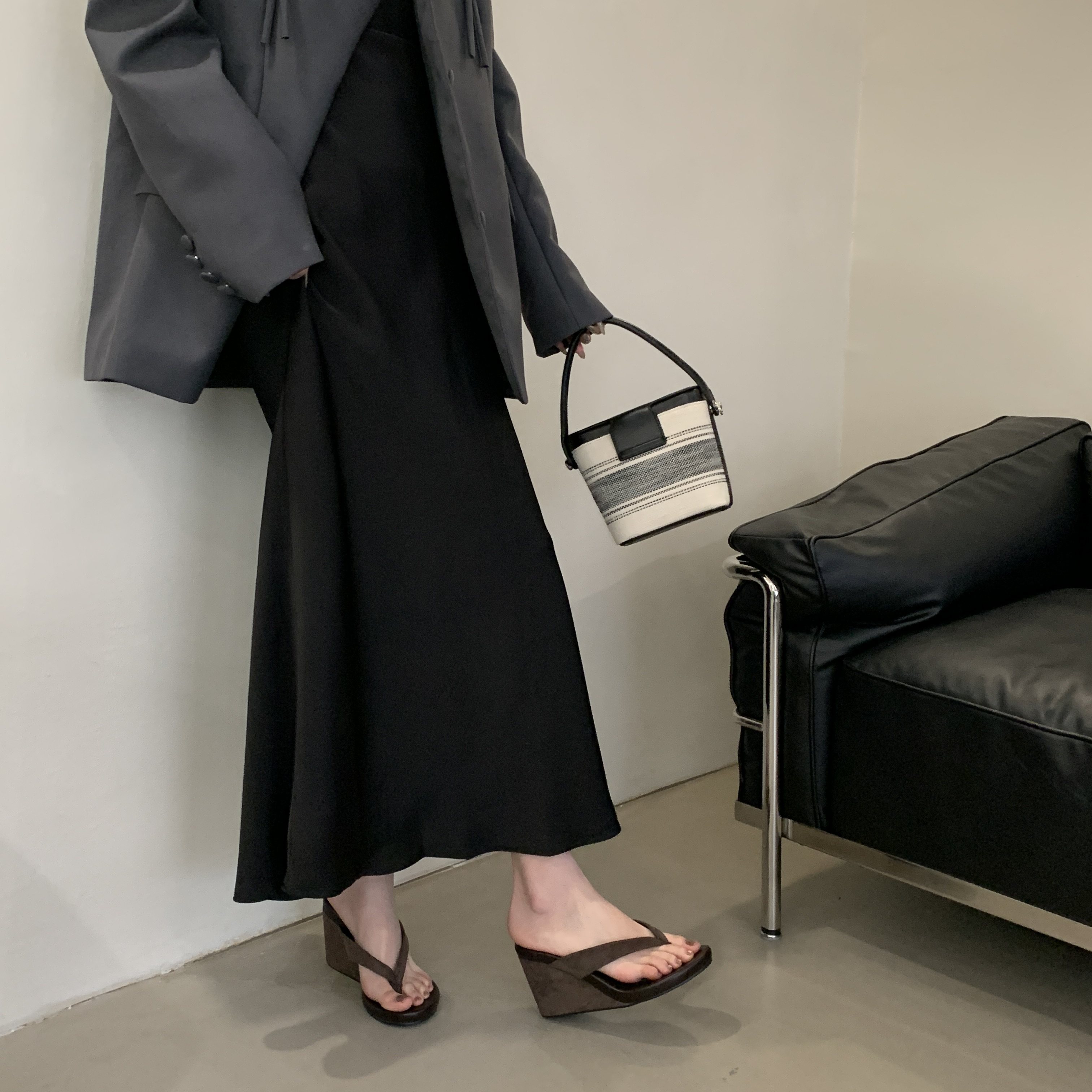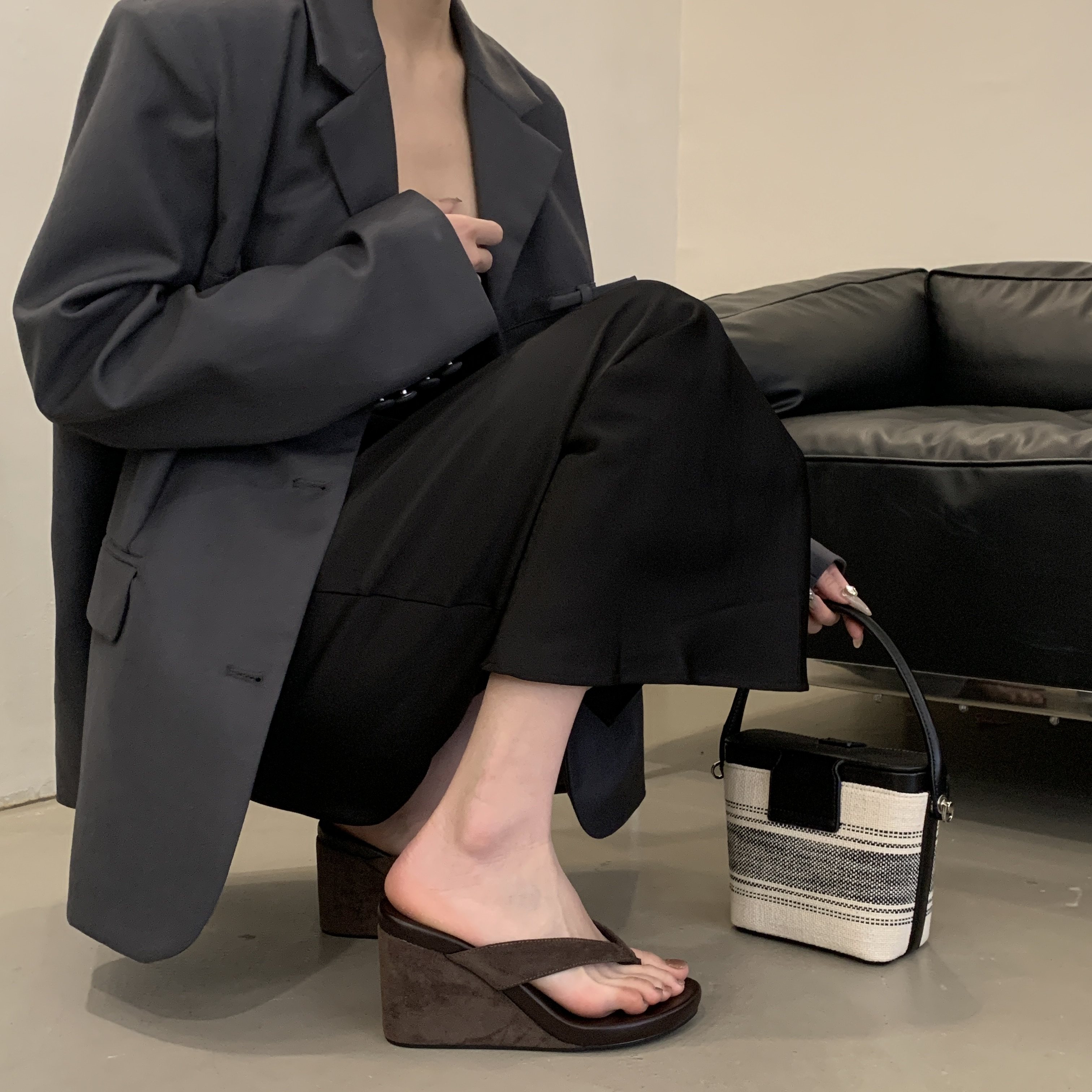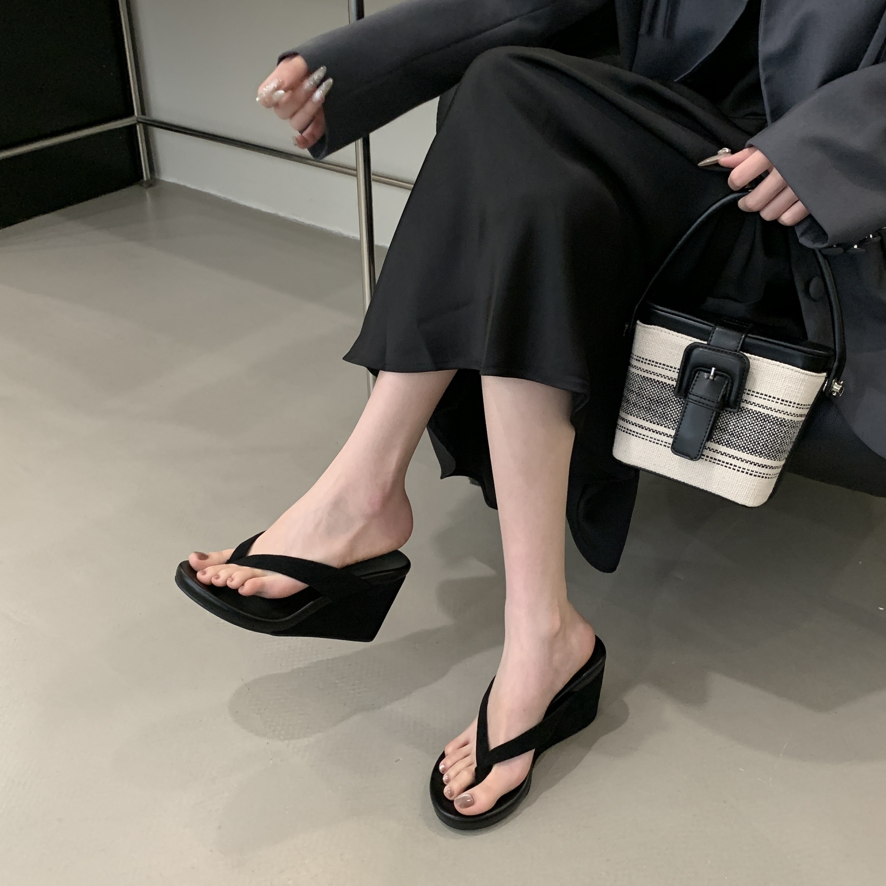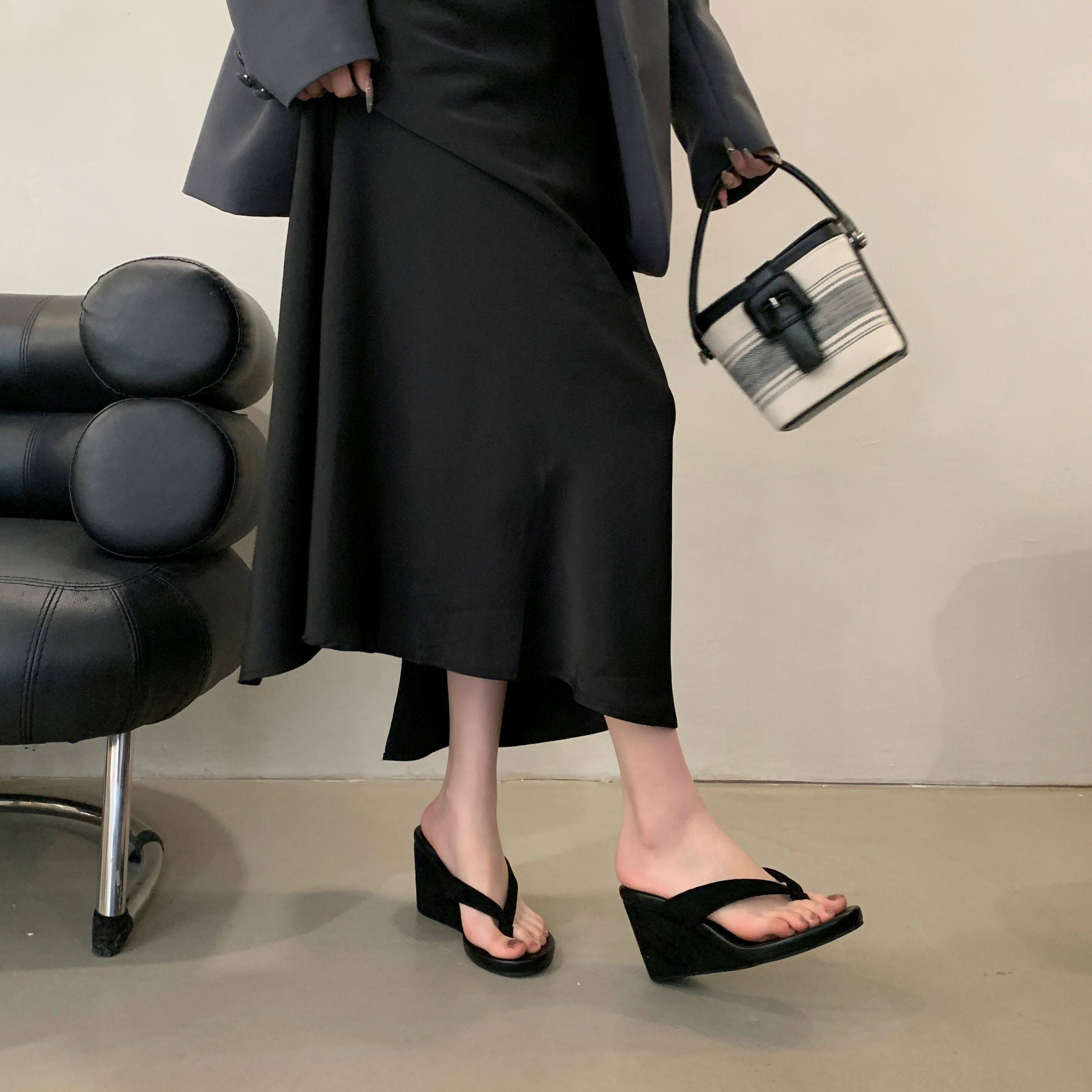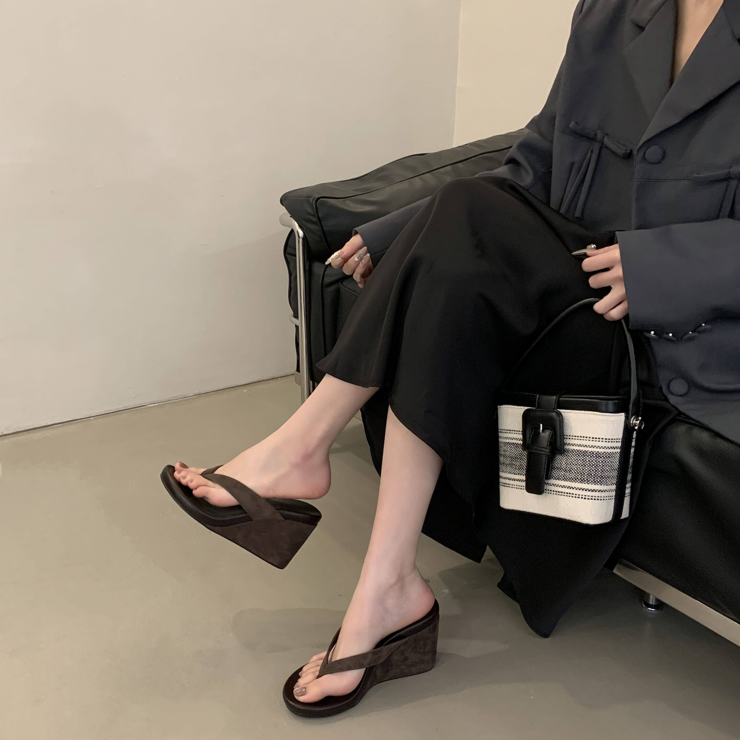 Весна и лето 2025, женские повседневные шлепанцы на танкетке с круглым носком, модные сандалии на высоком каблуке для верхней одежды