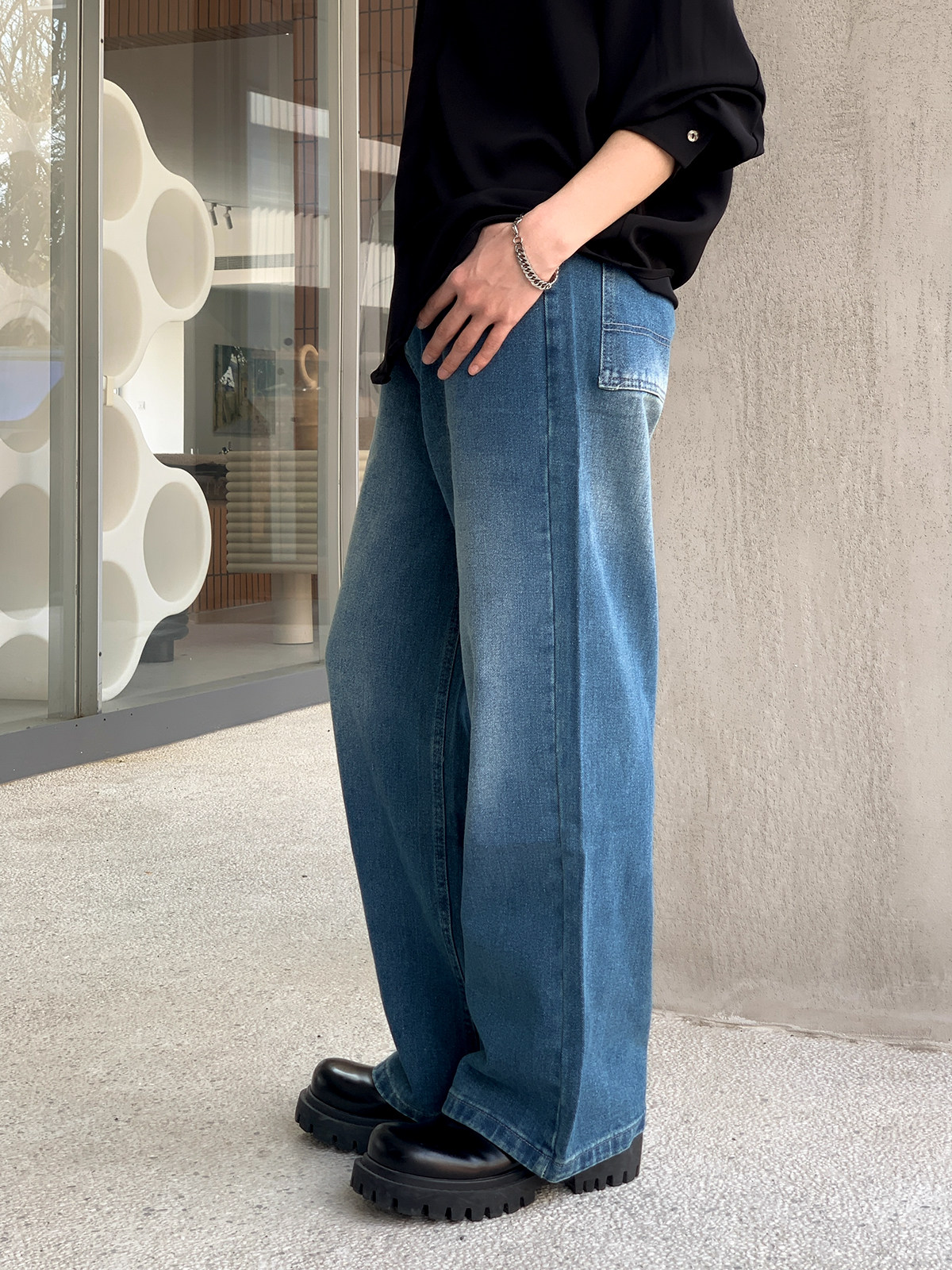 Темные прямые свободные джинсы, демисезонные штаны, свободный крой