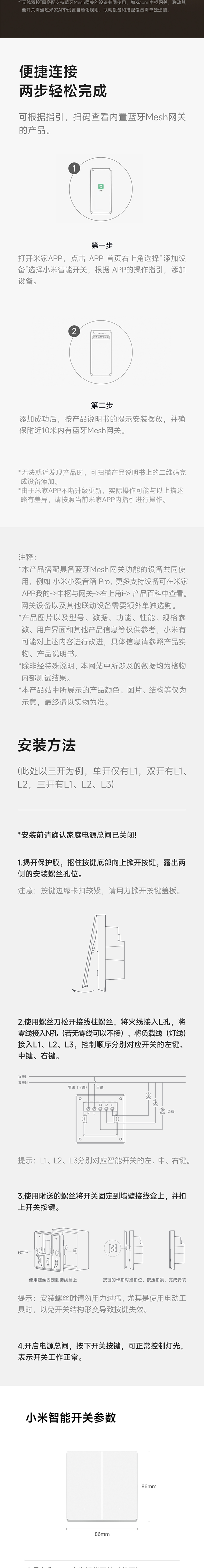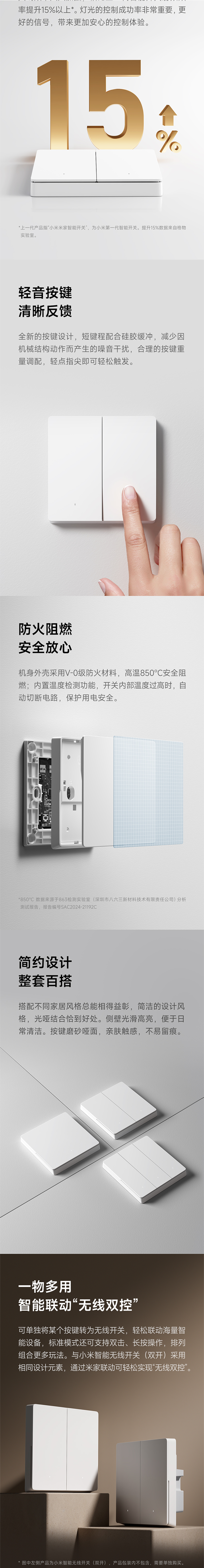 【Новый продукт】 xiaomi Smart Switch Single Zero Fire Upgrade Mesh2.0 Версия интеллектуальная связь световой звук