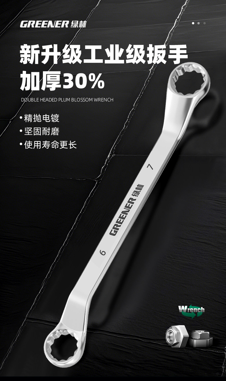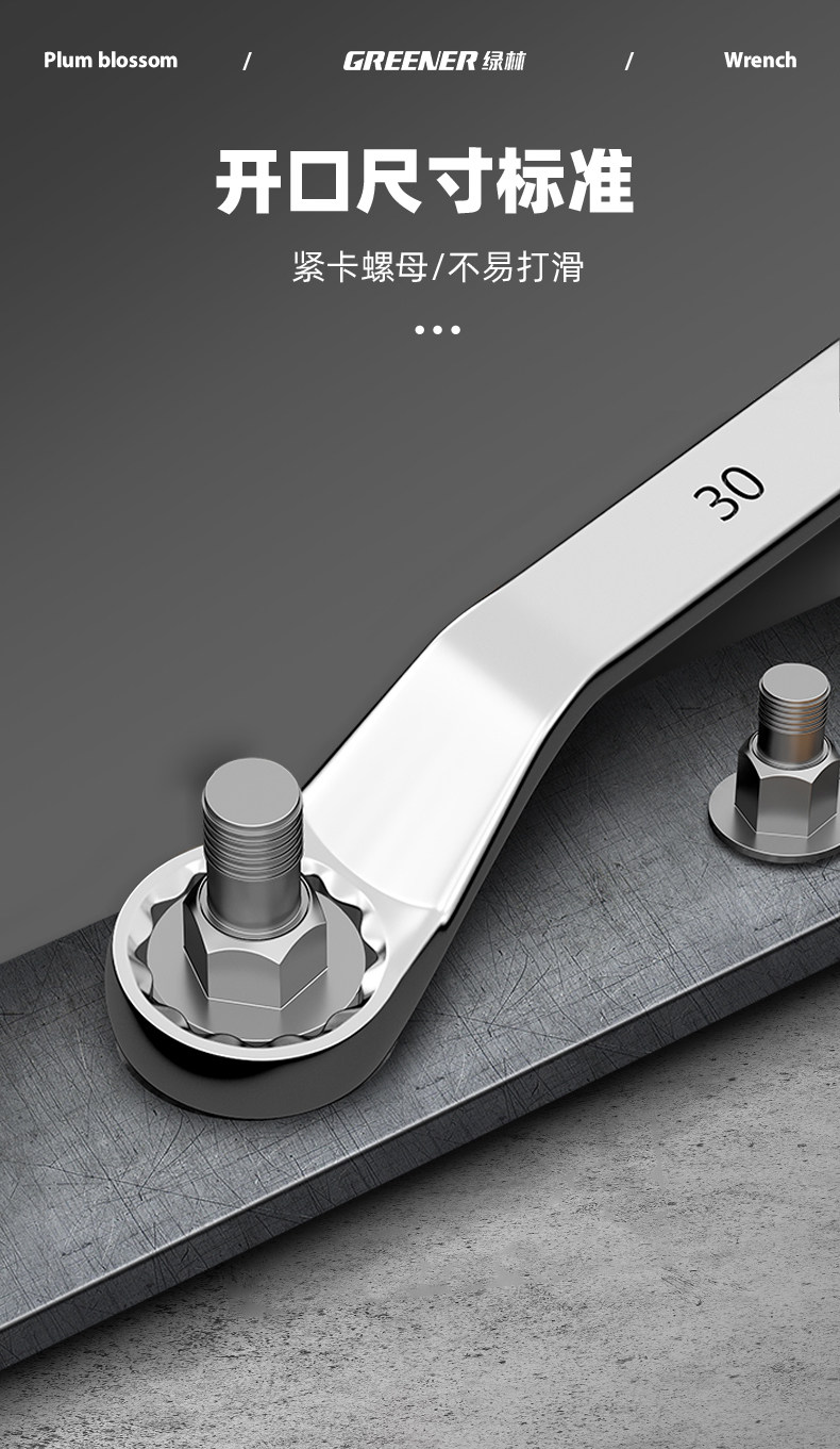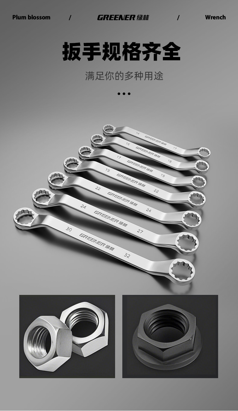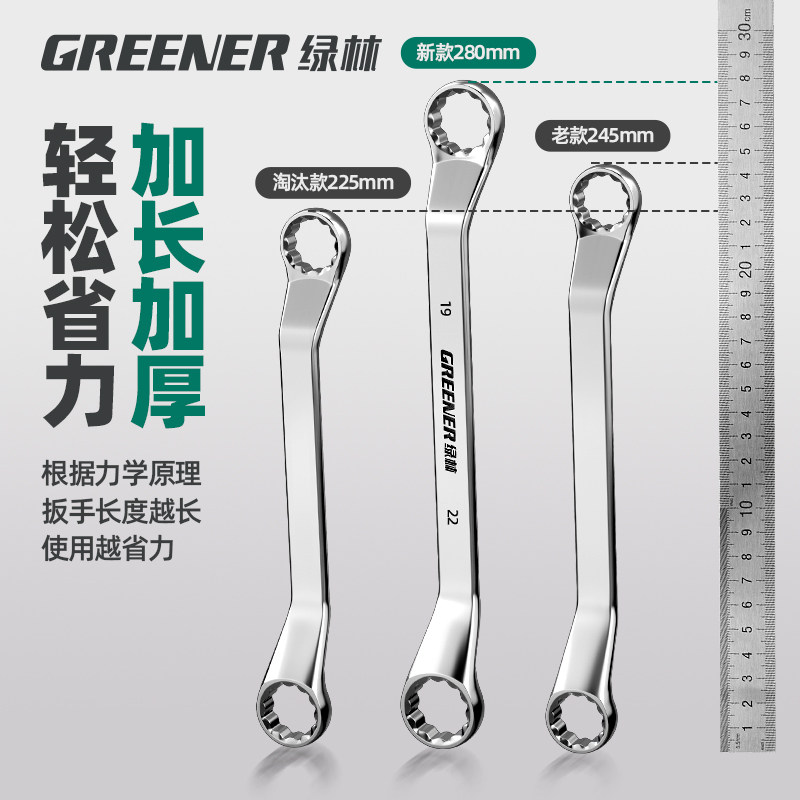 Зеленая лесная высокая силовая шлифовая ключ с двойной головкой Двухловые стаканы Растянутые высокие шеи 46 Ручные инструменты 8-10 автомобиль 12-мм доски