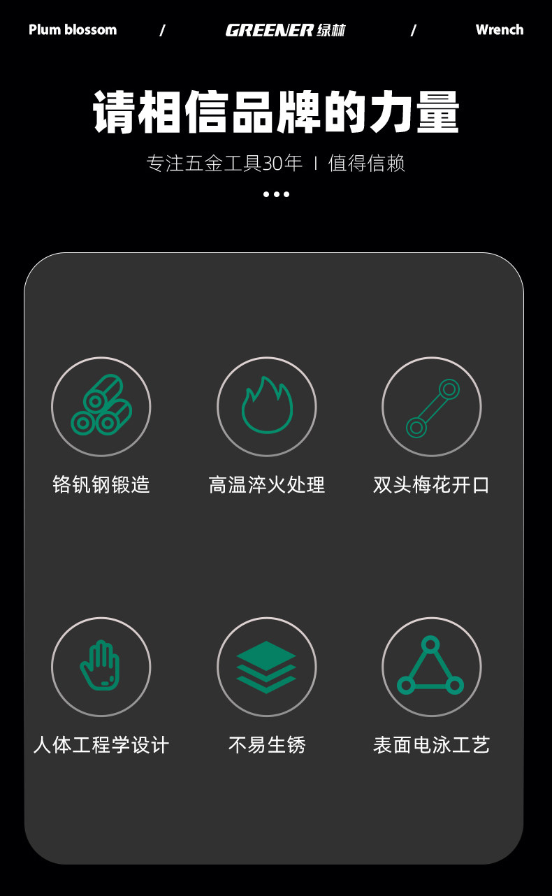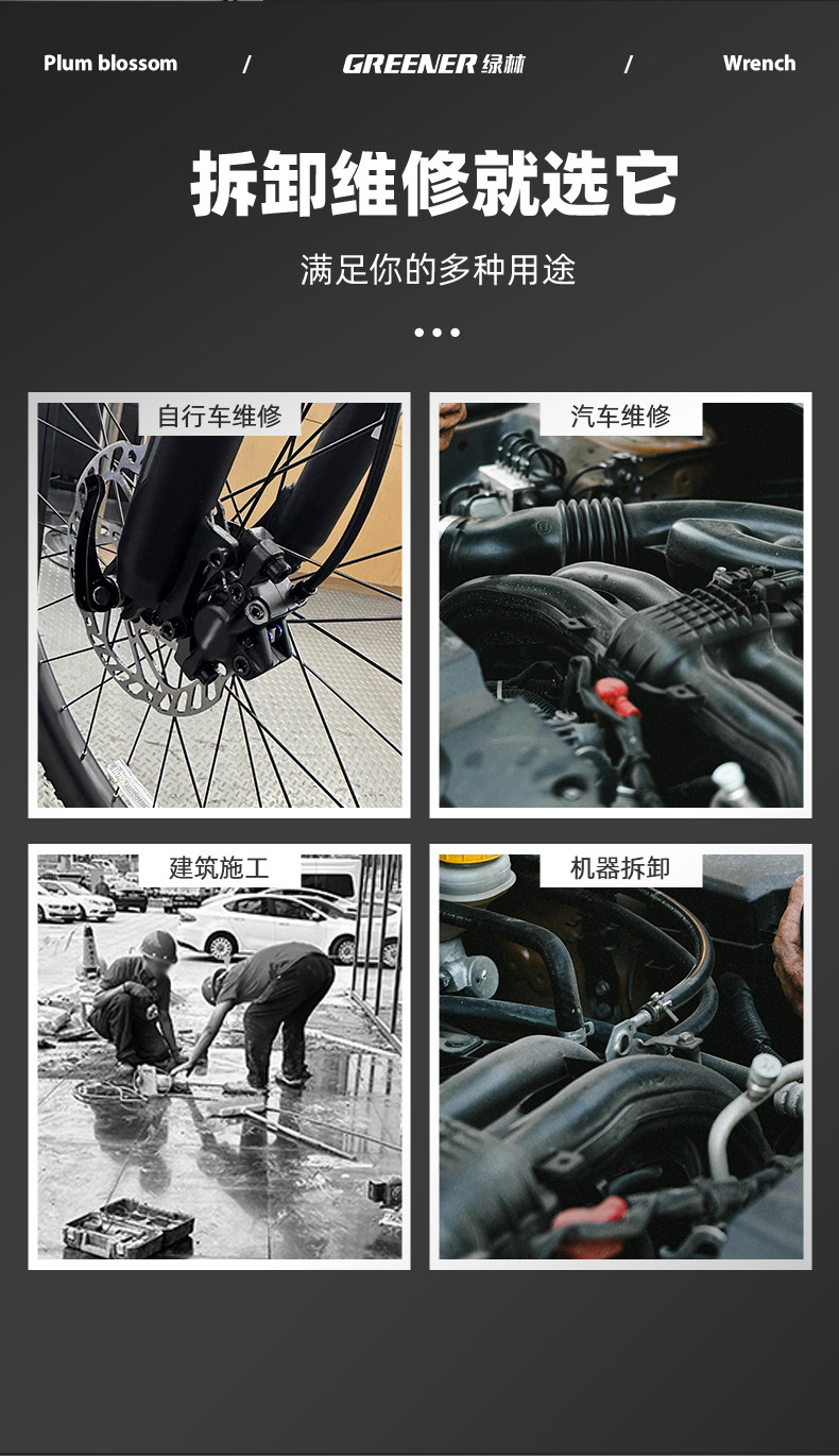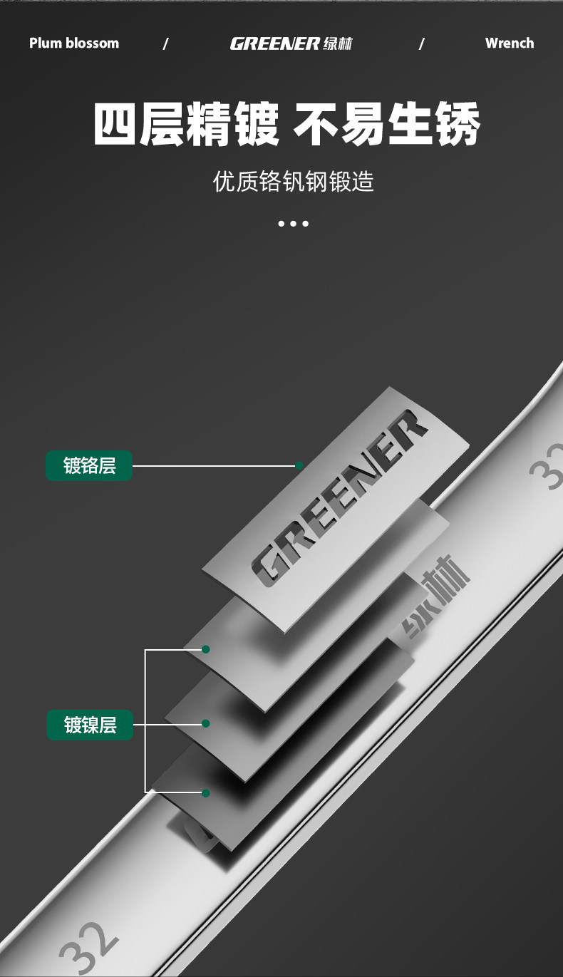 Зеленая лесная высокая силовая шлифовая ключ с двойной головкой Двухловые стаканы Растянутые высокие шеи 46 Ручные инструменты 8-10 автомобиль 12-мм доски