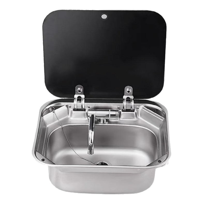 Крытая раковина на колесах, смеситель для горячей и холодной воды, кухонный умывальник из нержавеющей стали, однослотовая раковина для овощей, квадратная складная раковина