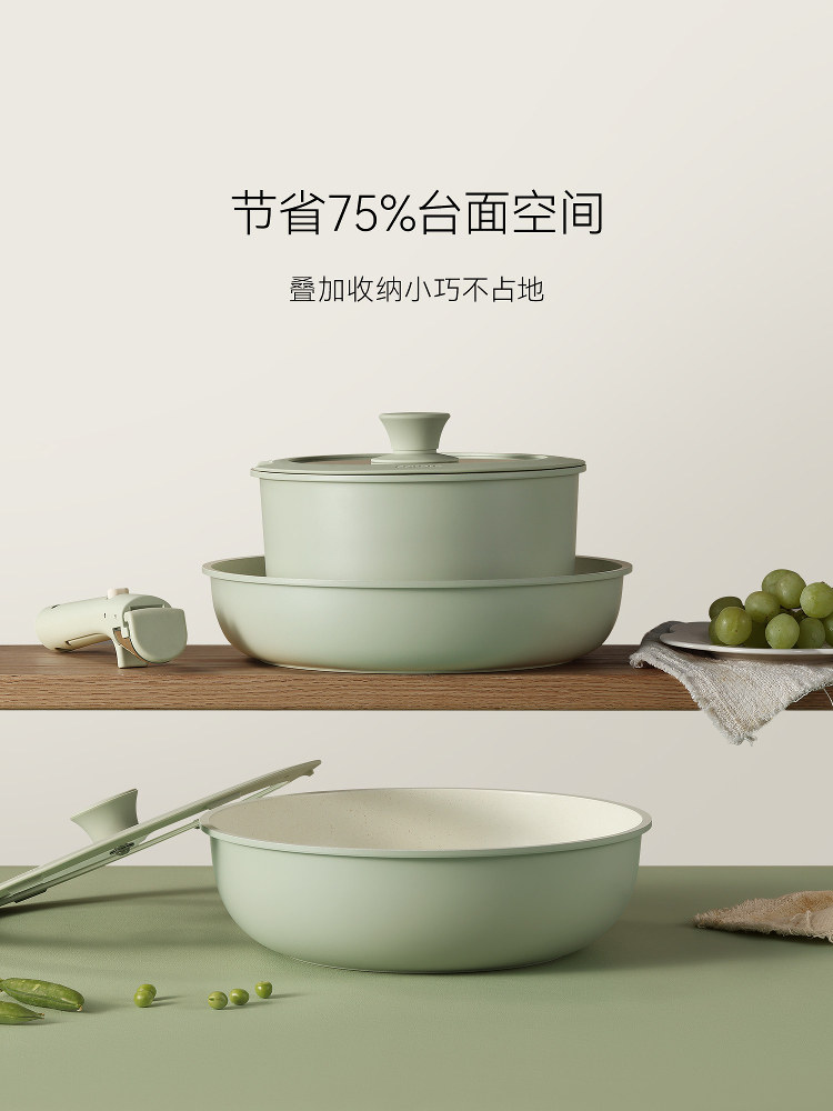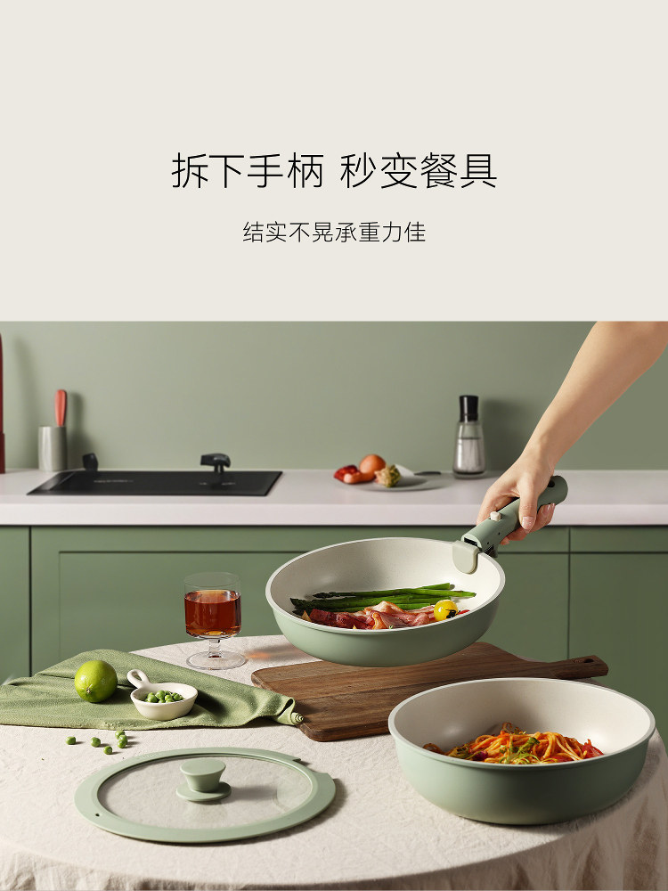 Кастрюля с антипригарным покрытием для моркови, кастрюля со съемной ручкой, бытовая, титановый вок, можно помещать в посудомоечную машину, полный комплект посуды для дома