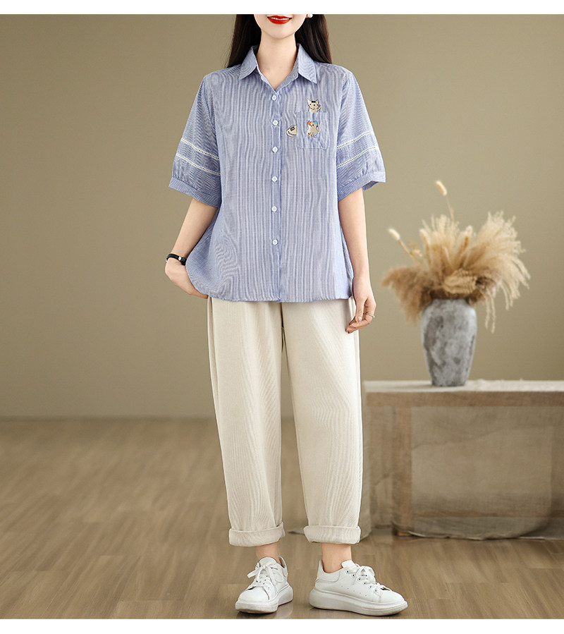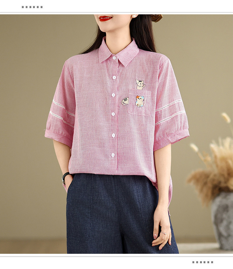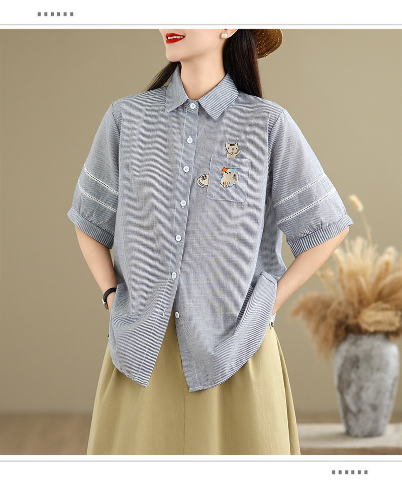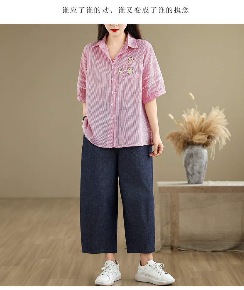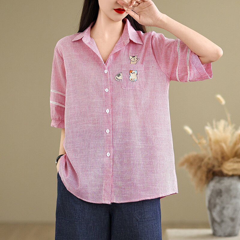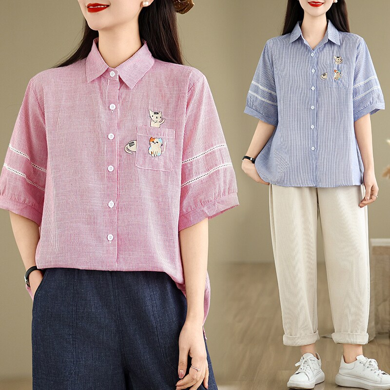 Ретро мультяшная летняя рубашка, с вышивкой, большой размер, оверсайз, яркий броский стиль