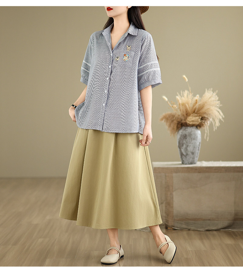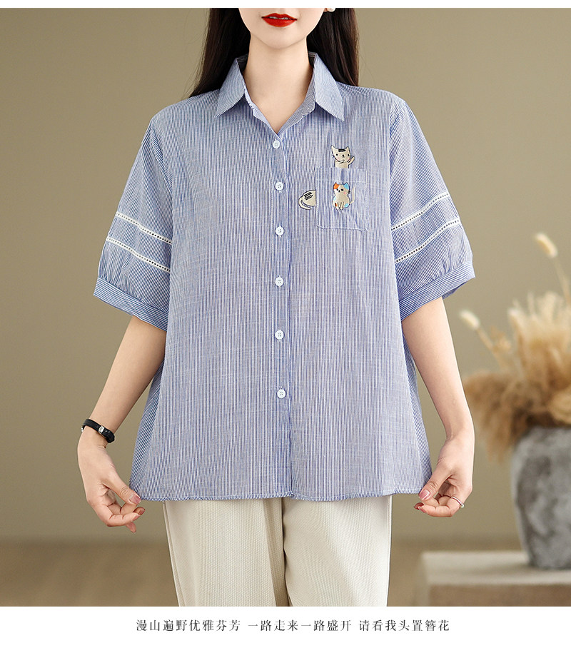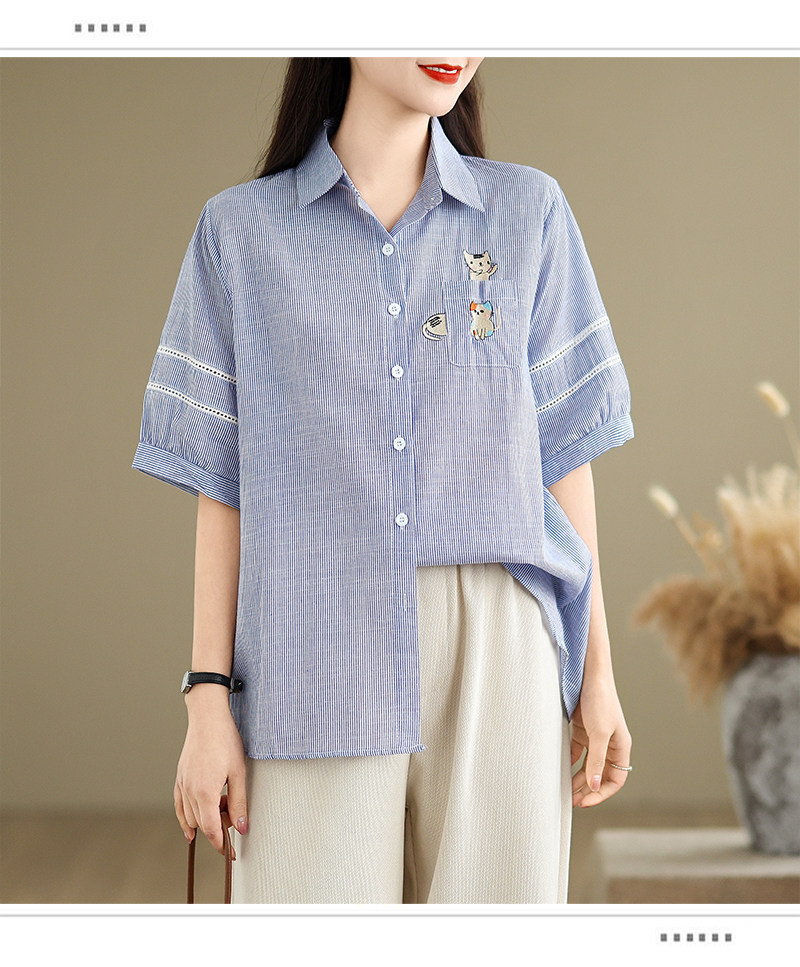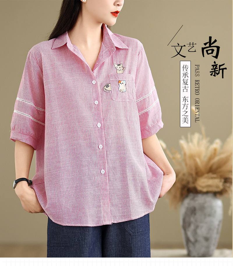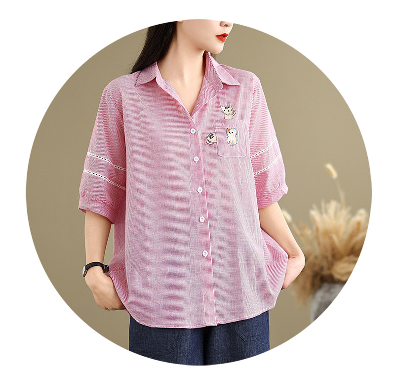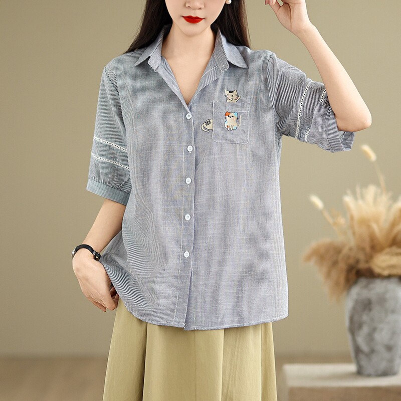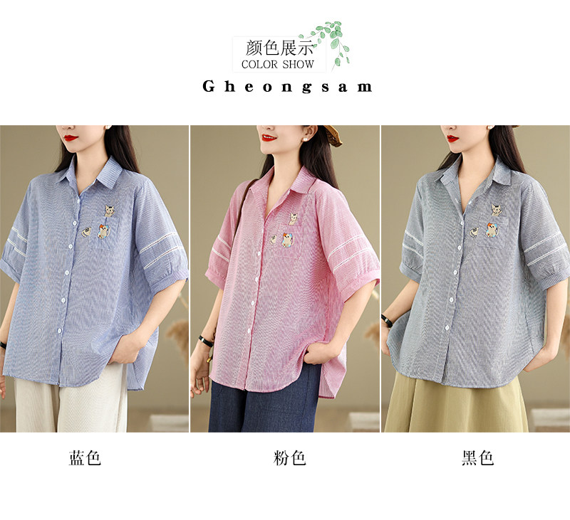Ретро мультяшная летняя рубашка, с вышивкой, большой размер, оверсайз, яркий броский стиль