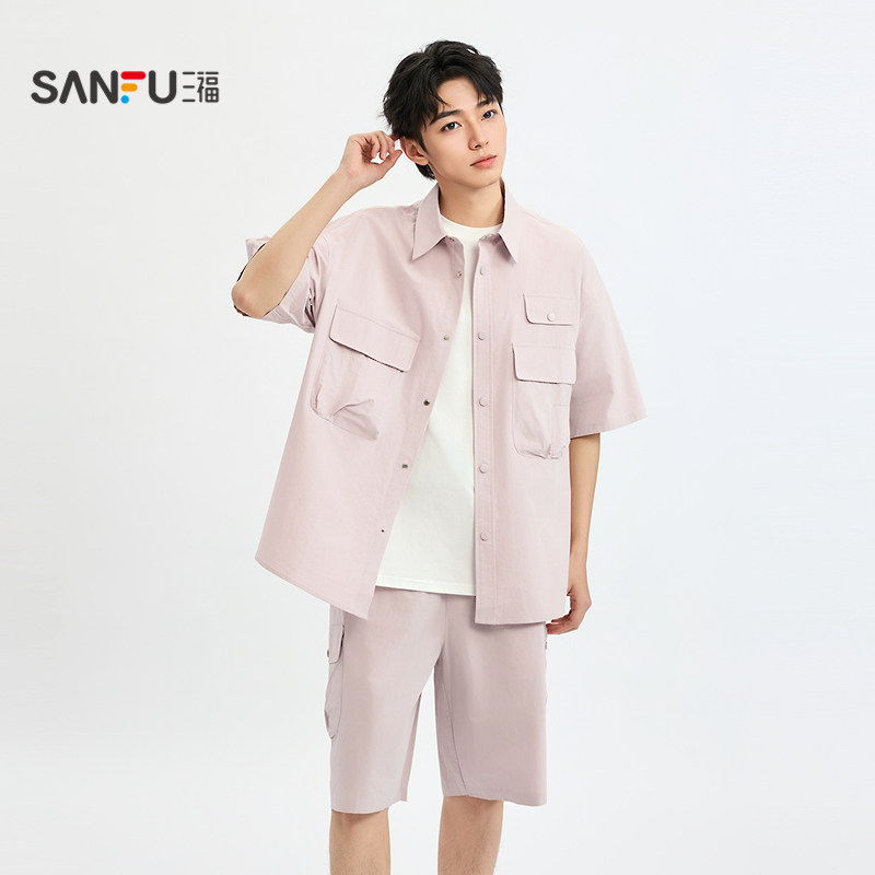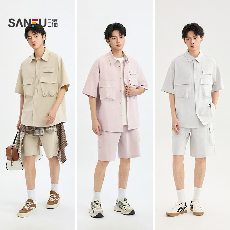 三福 2025 летняя мужская рабочая одежда для рубашки для рубашки для лацката 500066