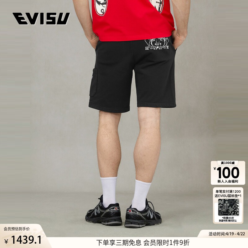 EVISU Lucky God 2025, новинка лета, мужские шорты с принтом в виде головы Будды 2ESHTM5ST7032XXCT