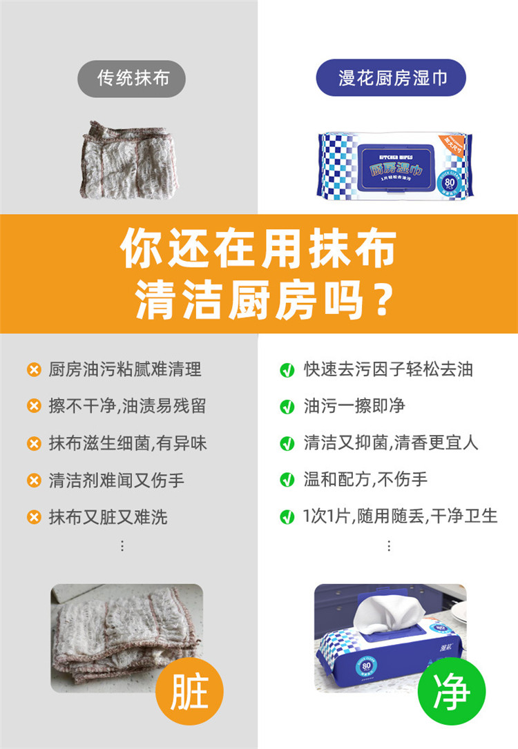 漫花 Мощные обезжиривающие влажные салфетки, увеличенная толщина