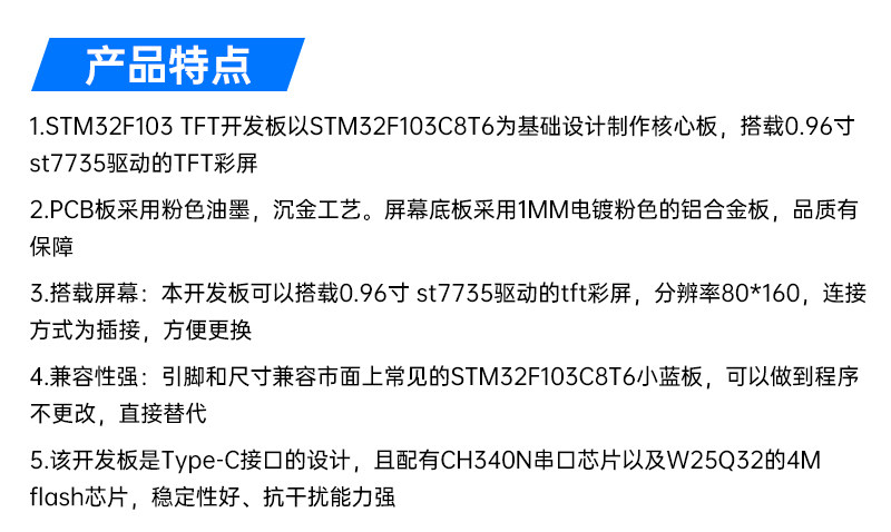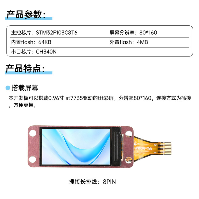 Плата разработки STM32 с 0,96-дюймовым ЖК-экраном TFT, микроконтроллером ARM, портом типа C STM32F103C8T6