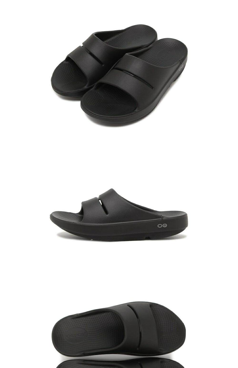 Японская прямая почтовая рассылка Oofos Sandals Mules Ooah Slide Sandals Черные мужчины и женщины Oofos ooah
