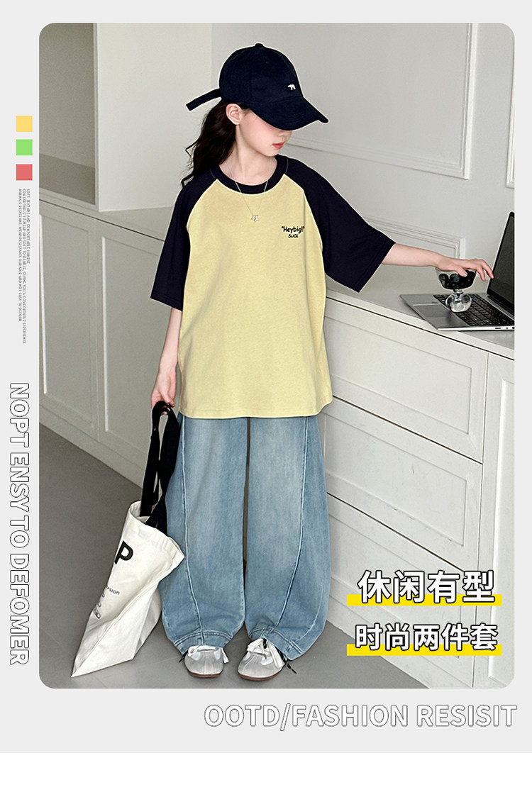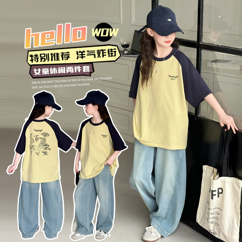 Летняя одежда, летняя футболка с коротким рукавом, комплект, в западном стиле, популярно в интернете