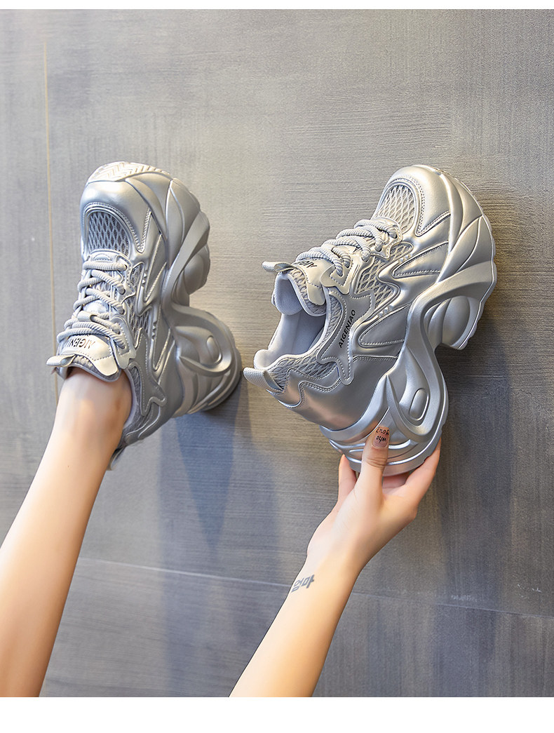 Тонкая летняя сетчатая дышащая высокая обувь на платформе, подходит для подростков, 12см
