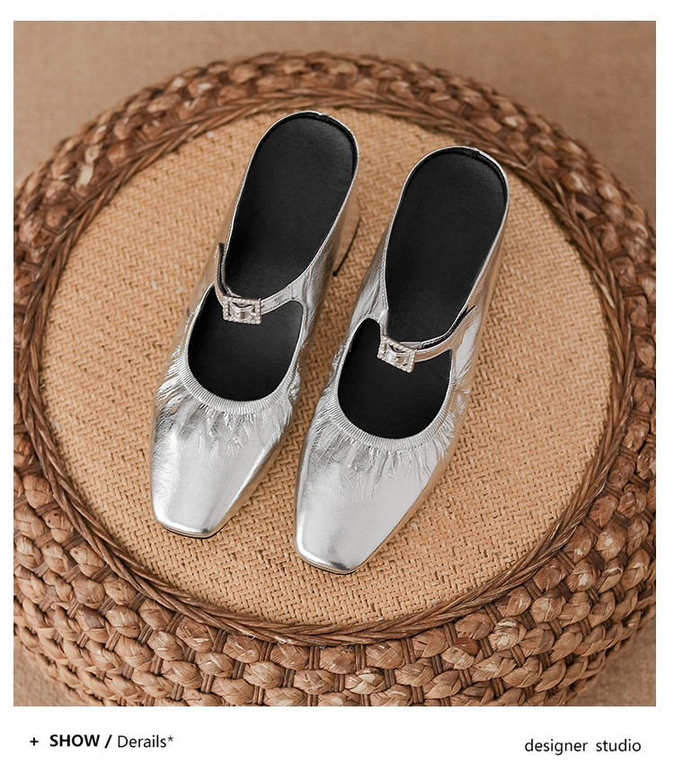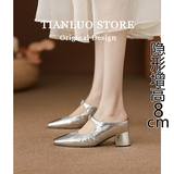 Высокая серебряная обувь на высоком каблуке, тапочки, слайдеры, 8см, французский стиль