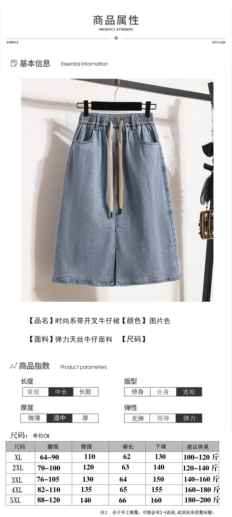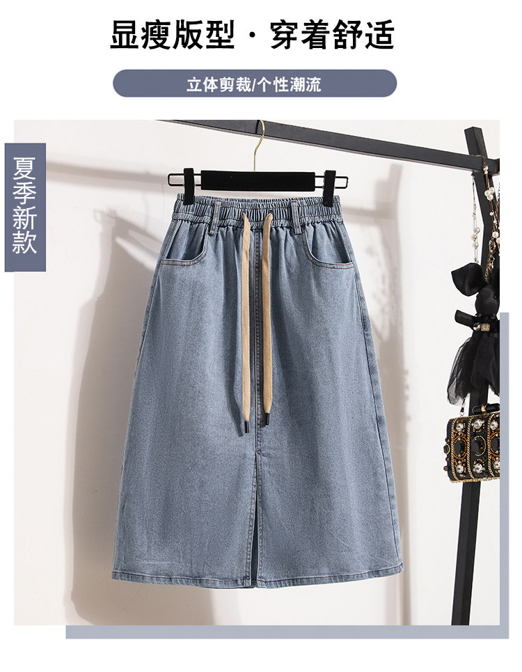 Тонкая эластичная летняя джинсовая юбка, большой размер, эластичная талия, А-силуэт