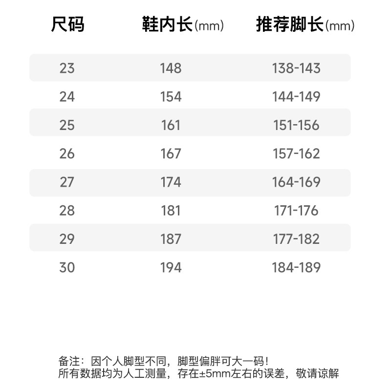 | Размер обуви: | Размер 23 подходит на ногу длиной 13,8-14,3 см., Размер 24 подходит на ногу длиной 14,4-14,9 см., Размер 25 подходит на ногу длиной 15,1-15,6 см., Размер 26 подходит на ногу длиной 15,7-16,2 см., Размер 27 подходит на ногу длиной 16,4-16,9 см., Размер 28 подходит на ногу длиной 17,1-17,6 см., Размер 29 подходит на ногу длиной 17,7-18,2 см., Размер 30 подходит на ногу длиной 18,4-18,9 см. |