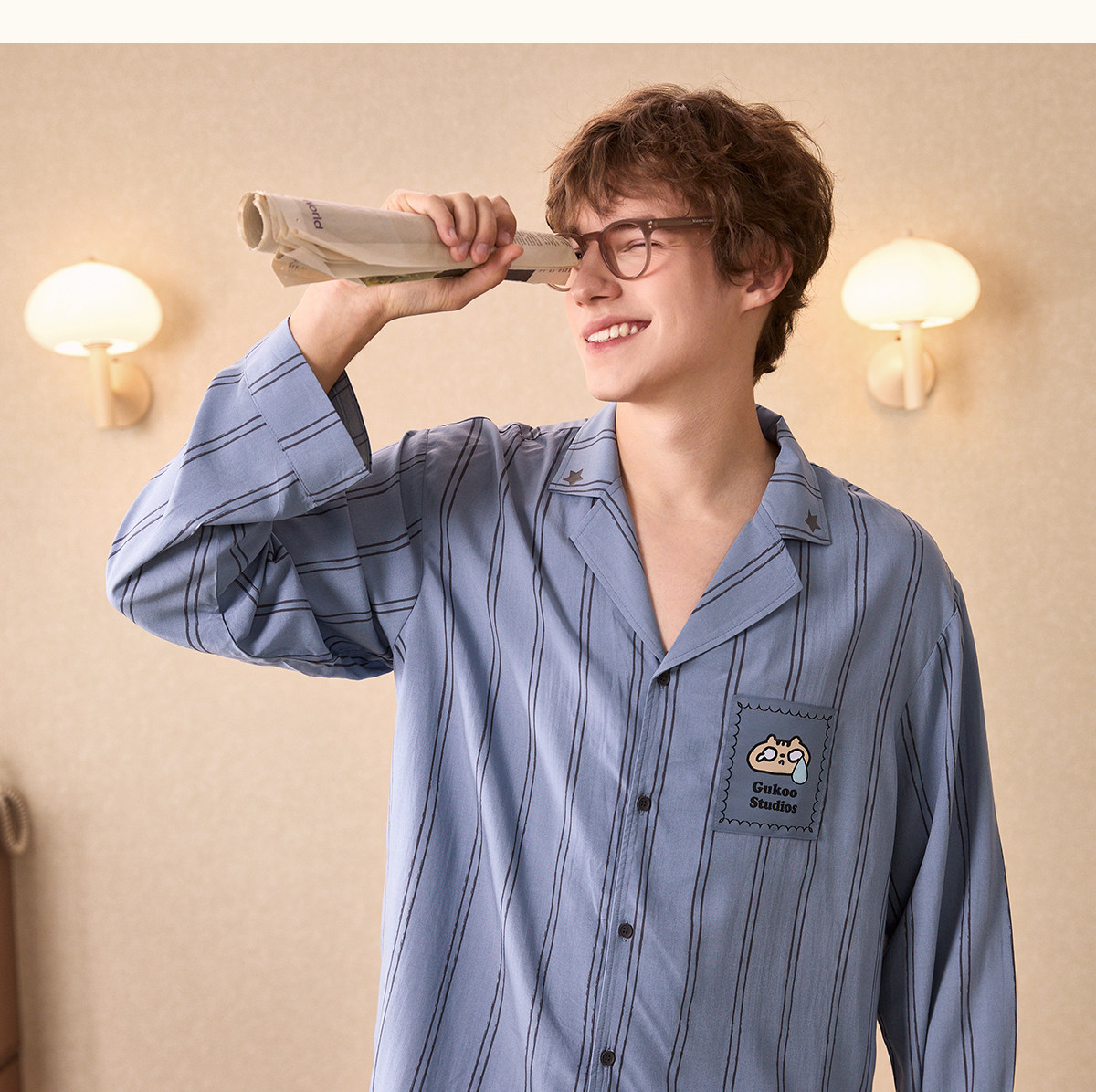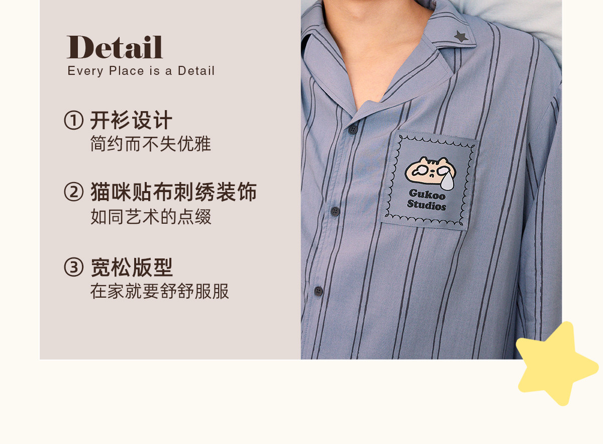 Gukoo/果壳 Осенняя пижама, комплект, простой и элегантный дизайн