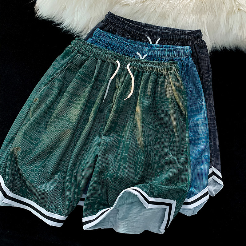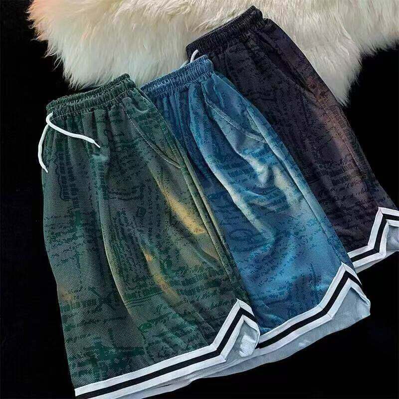 Баскетбольные быстросохнущие мужские трендовые штаны для тренировок, комбинезон для спортзала, в американском стиле, оверсайз, для бега