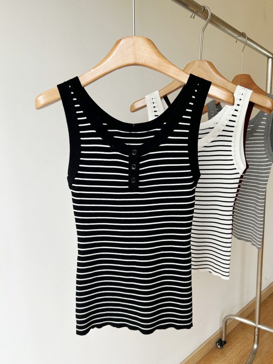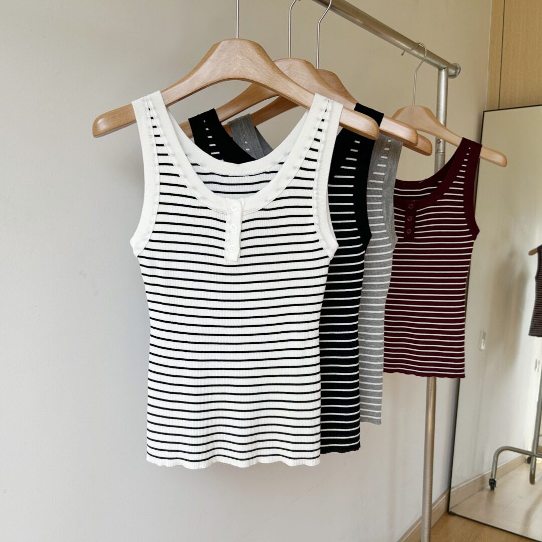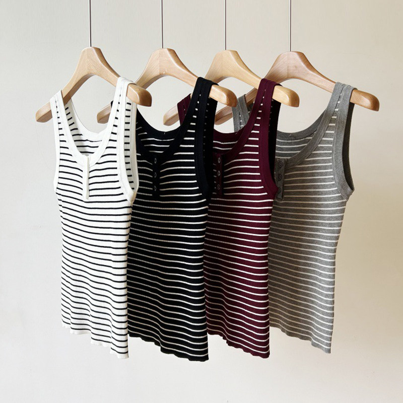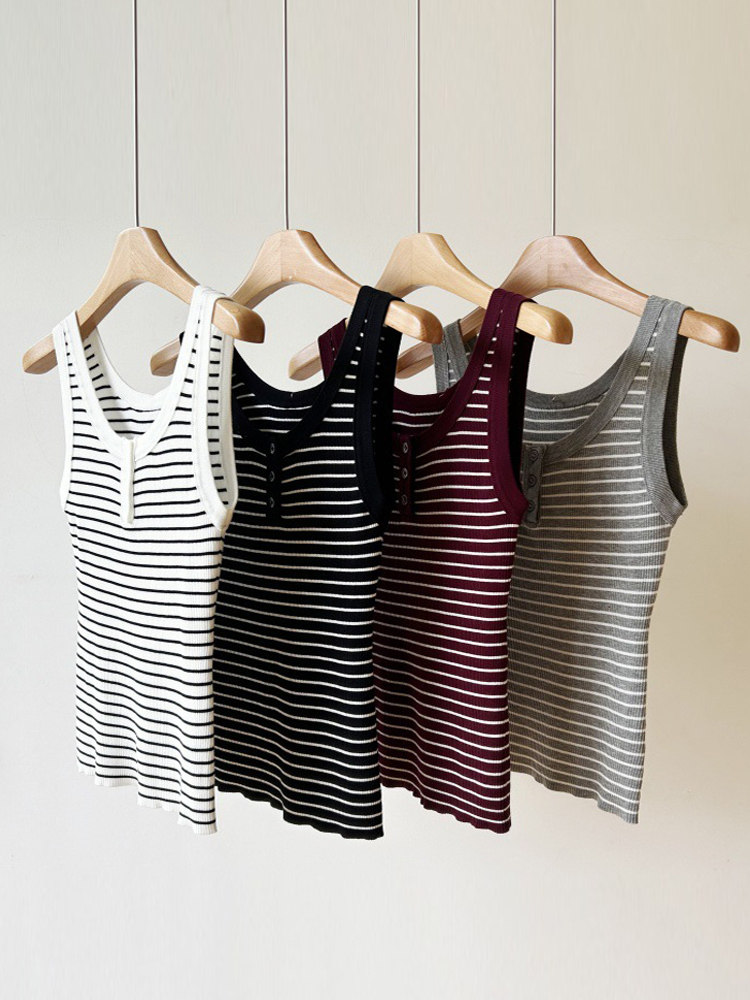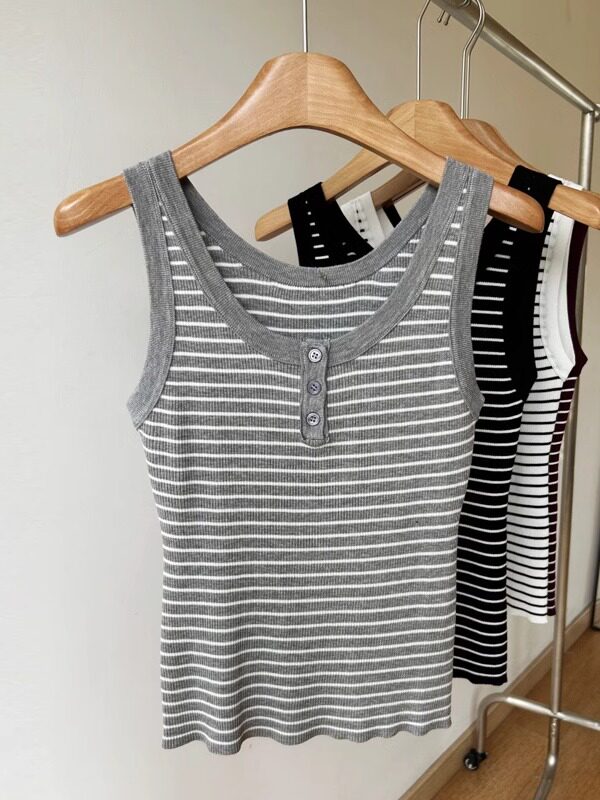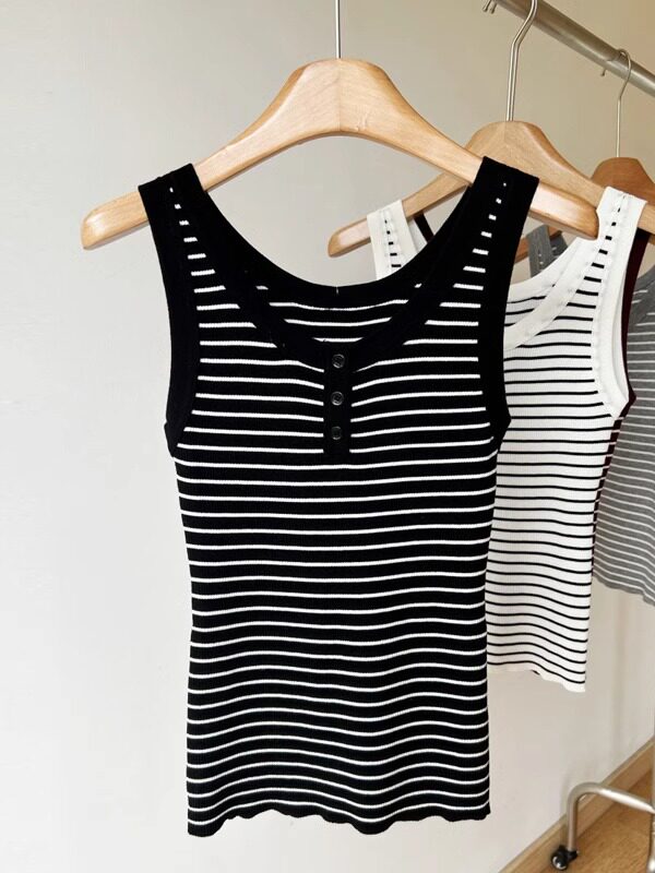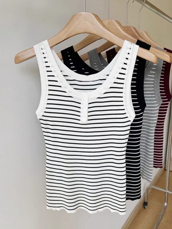 Трикотажный жилет без рукавов, летняя классическая майка топ с круглым воротником, облегающий крой