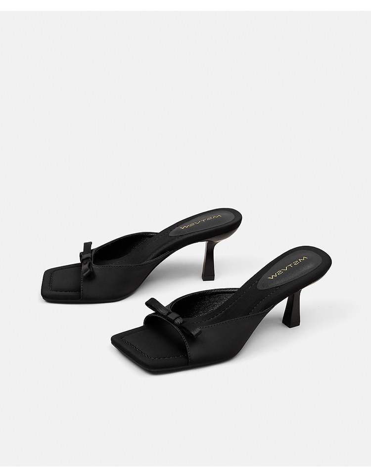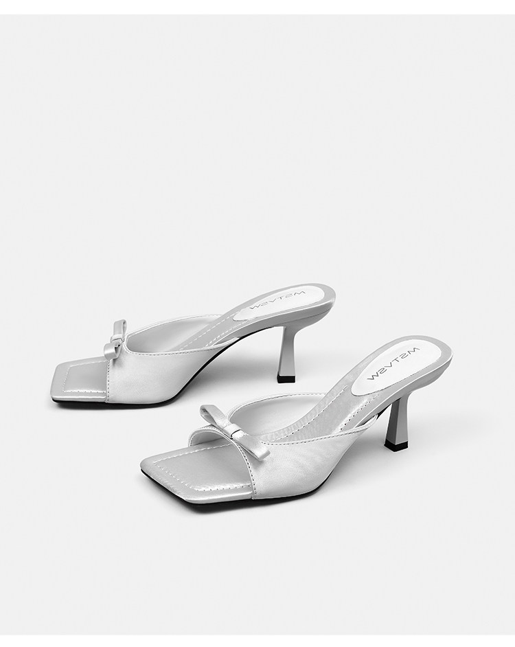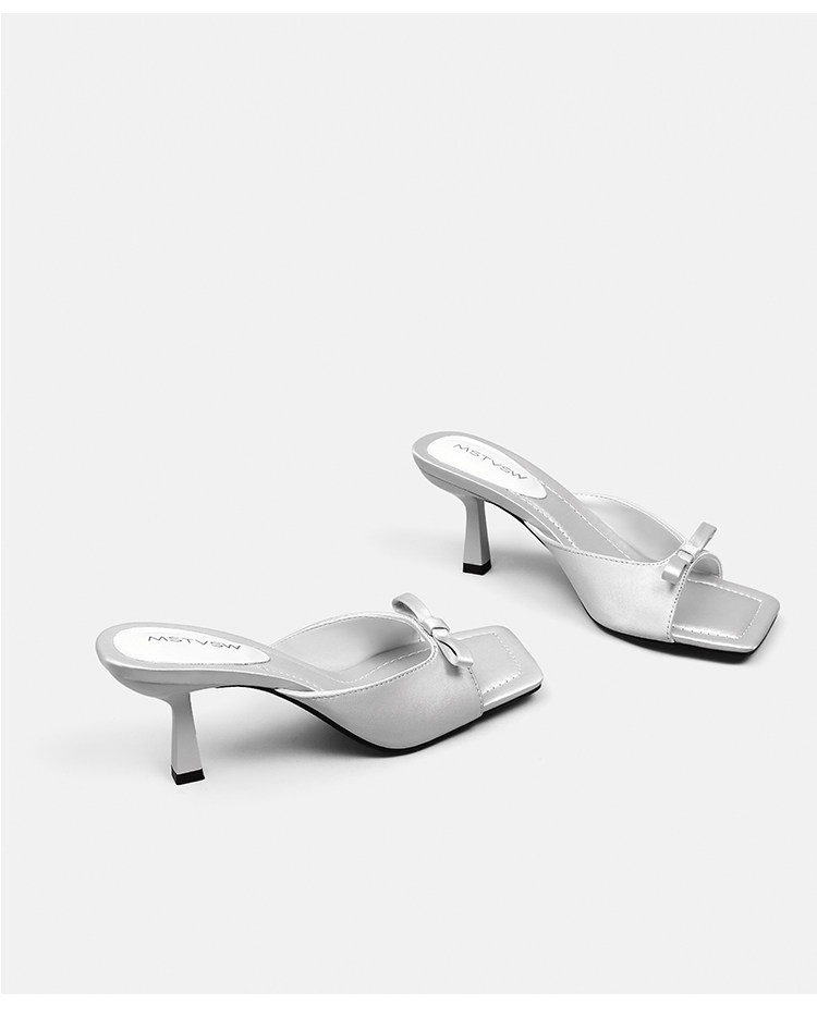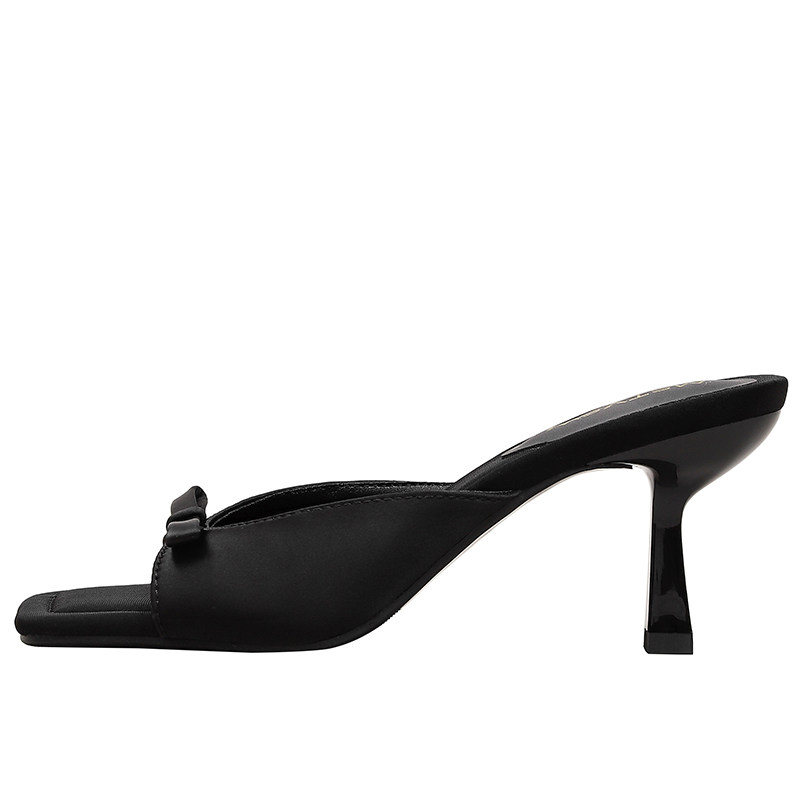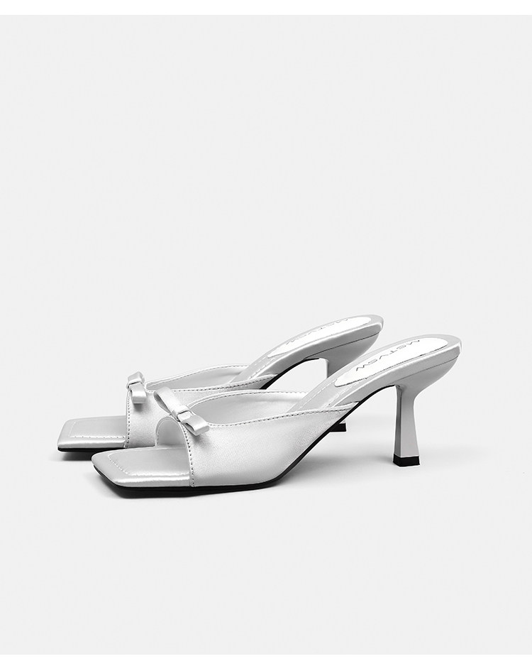 Слайдеры с бантиком, летние тапочки, обувь на высоком каблуке, французский стиль
