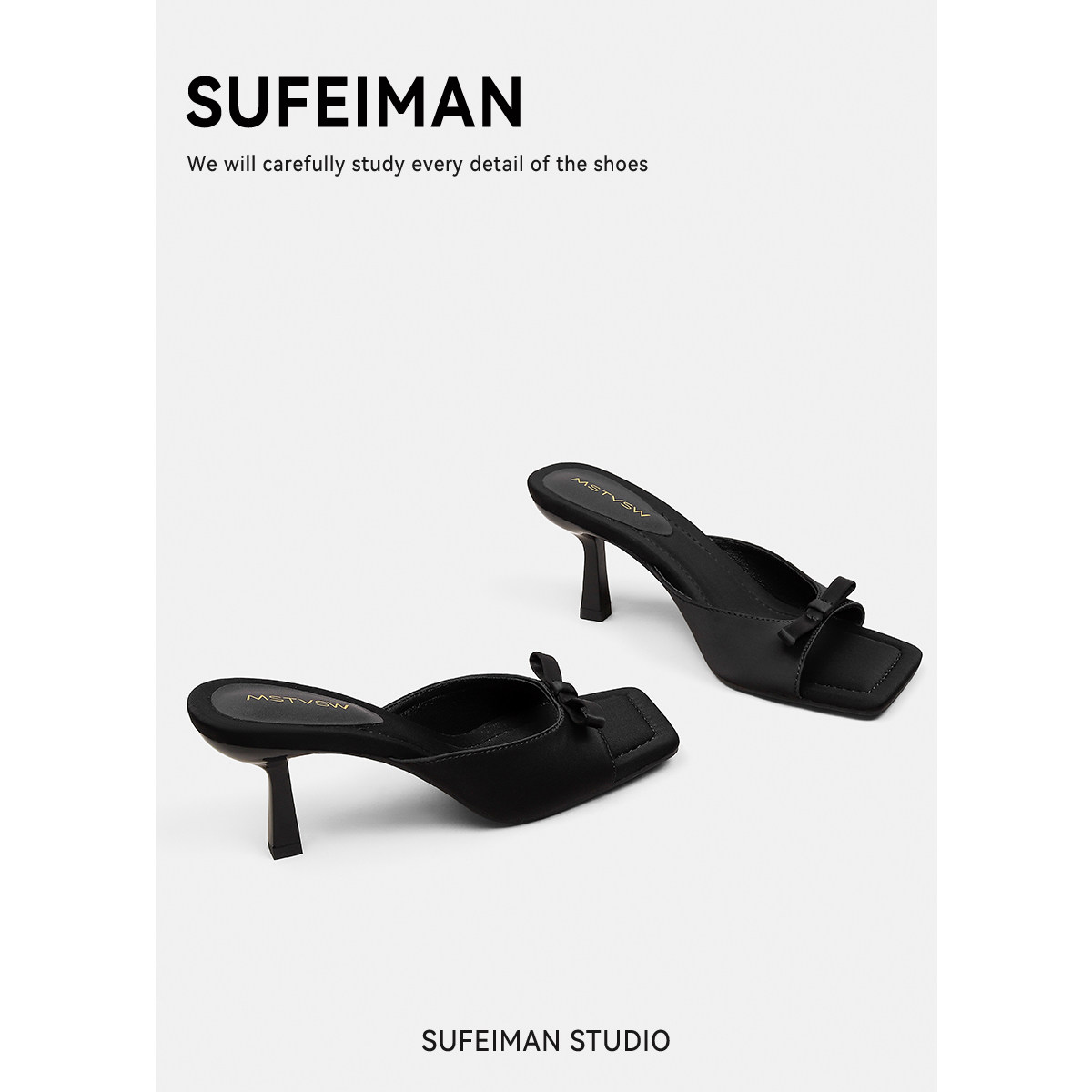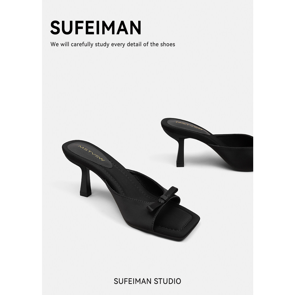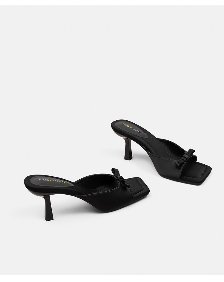 Слайдеры с бантиком, летние тапочки, обувь на высоком каблуке, французский стиль