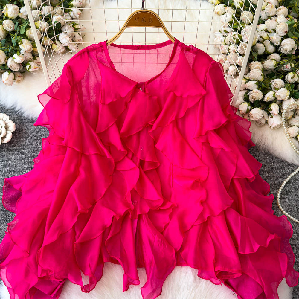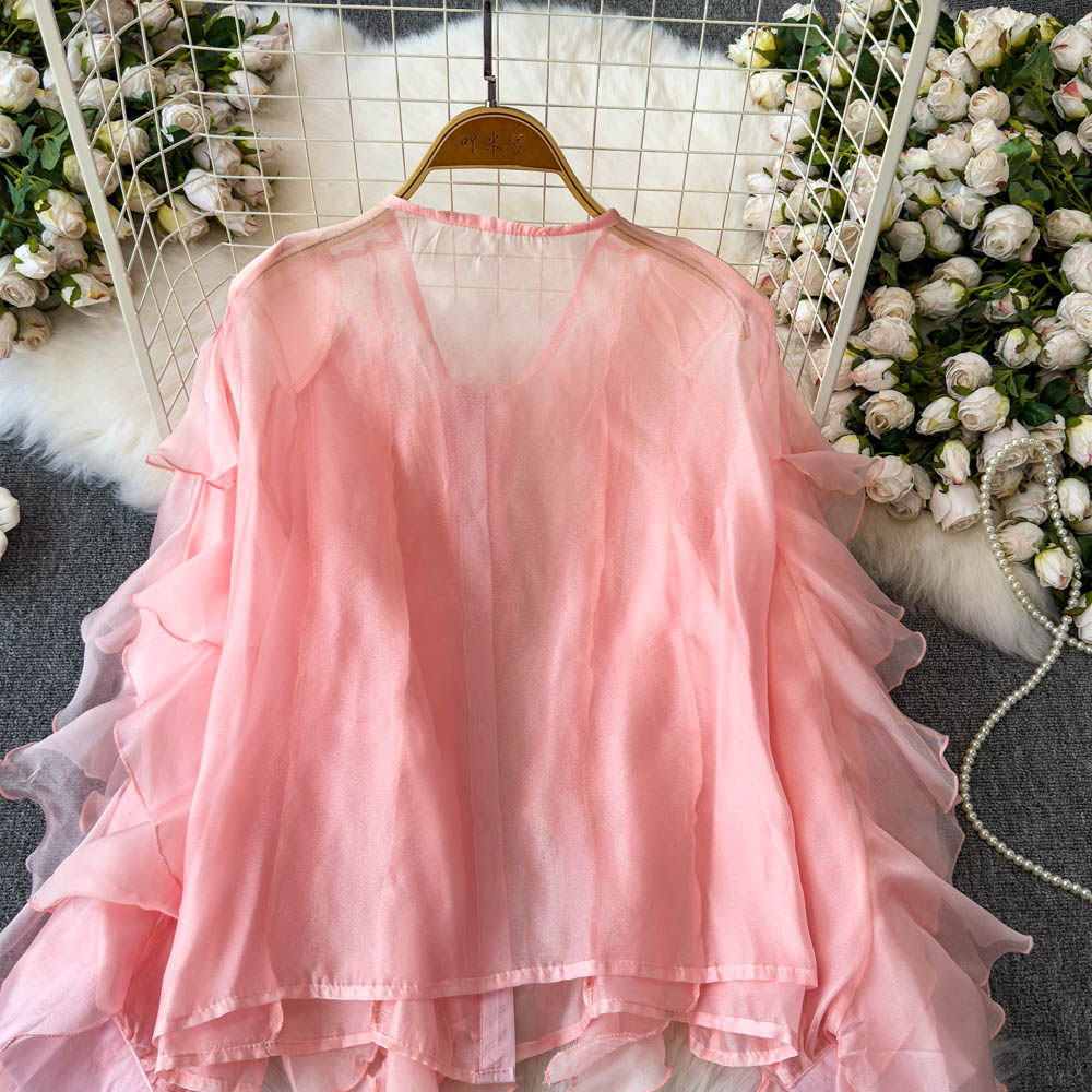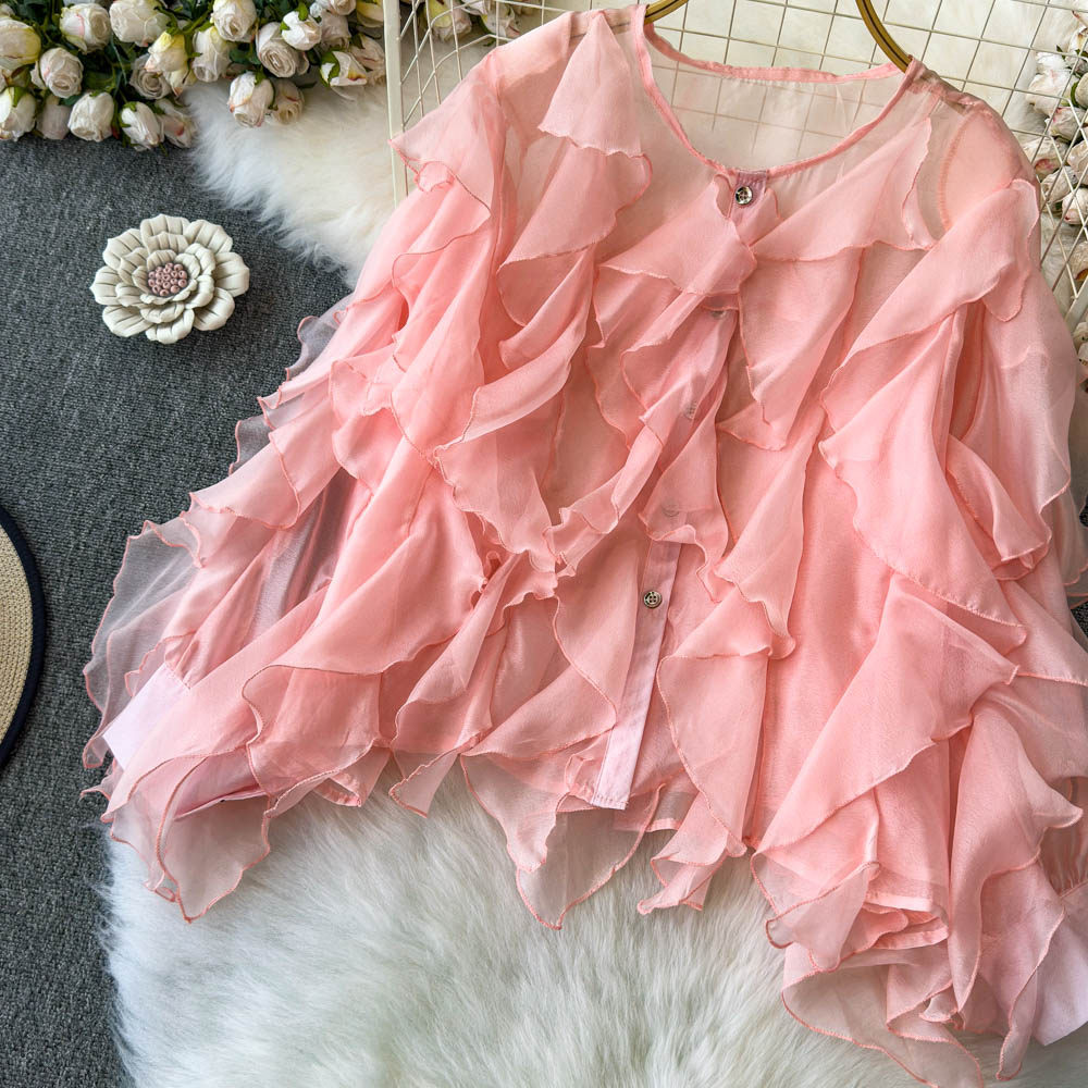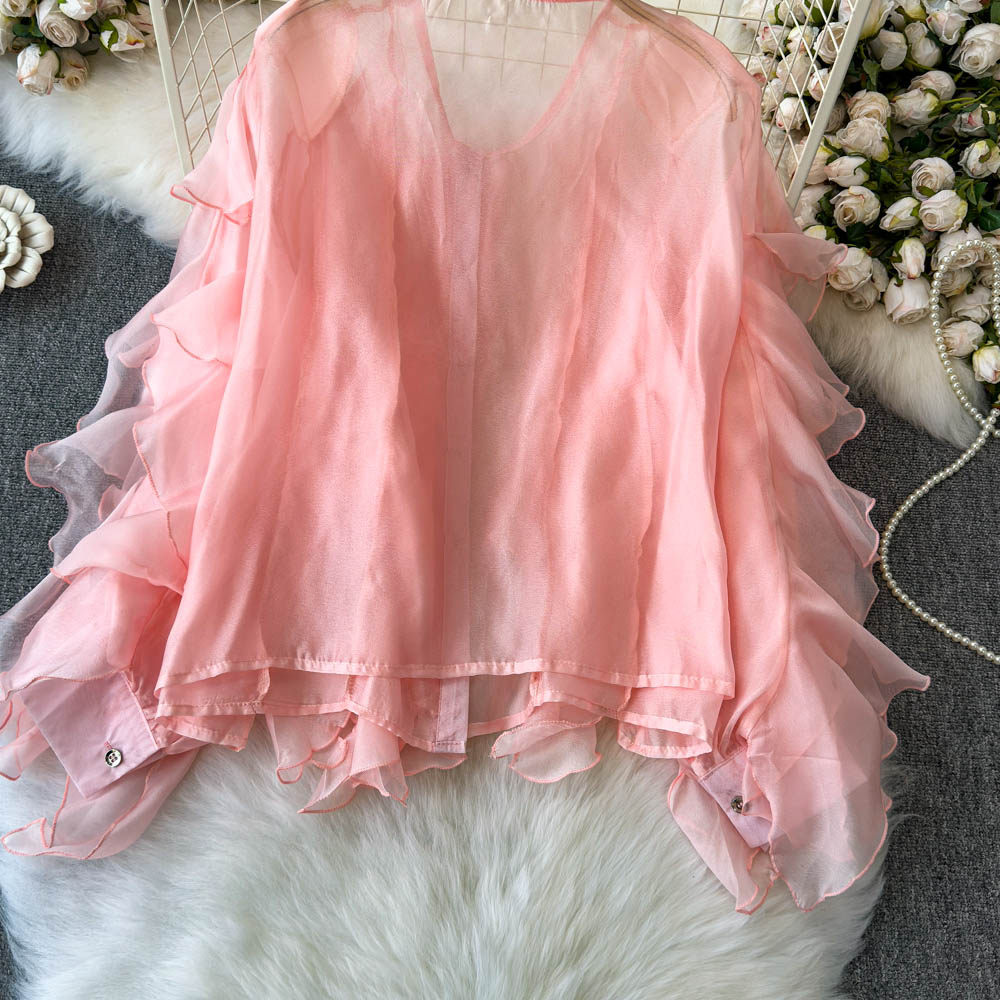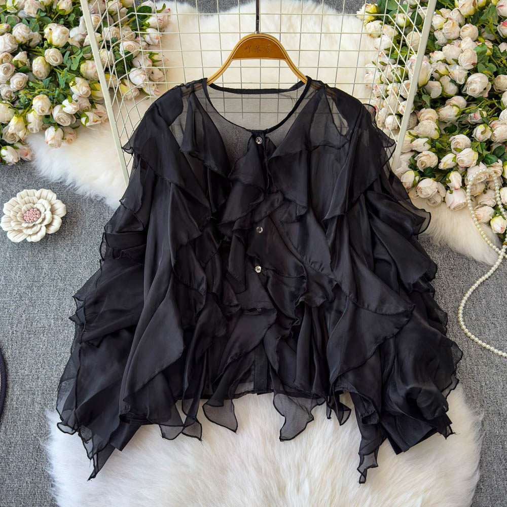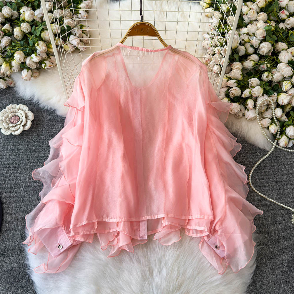Легкая и тонкая дизайнерская атмосферная шифоновая рубашка, оверсайз, свободный крой, защита от солнца, в корейском стиле