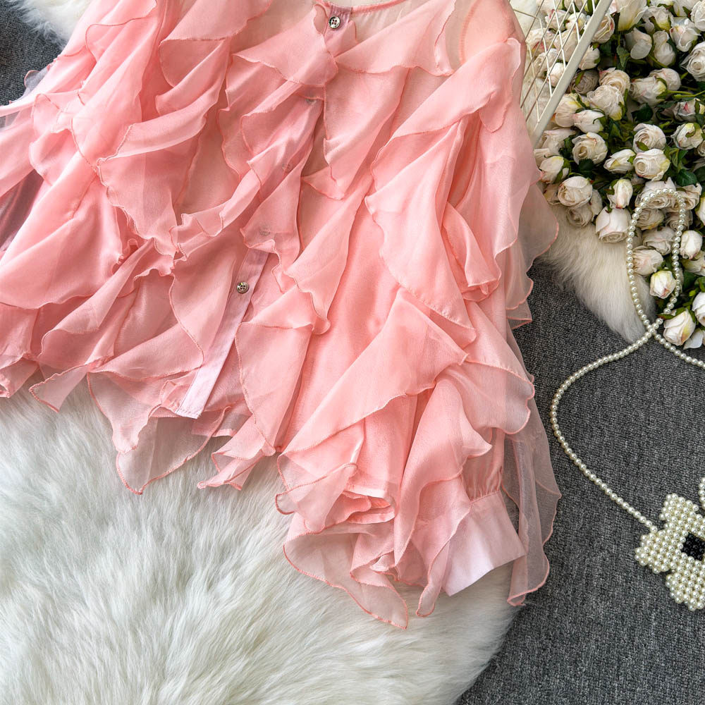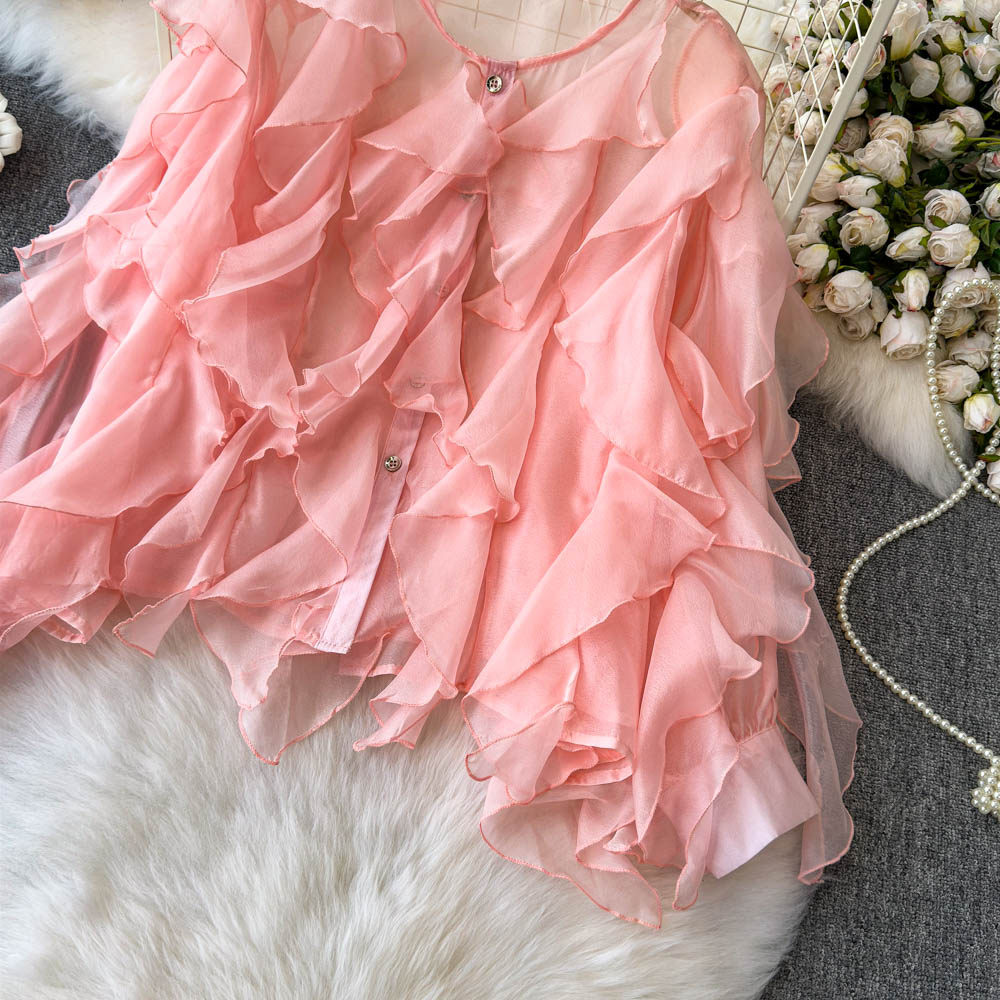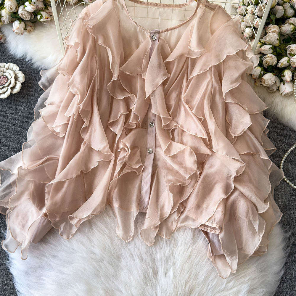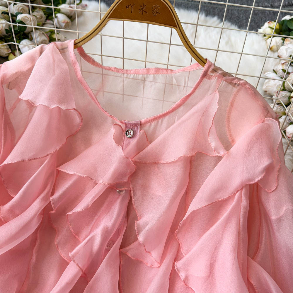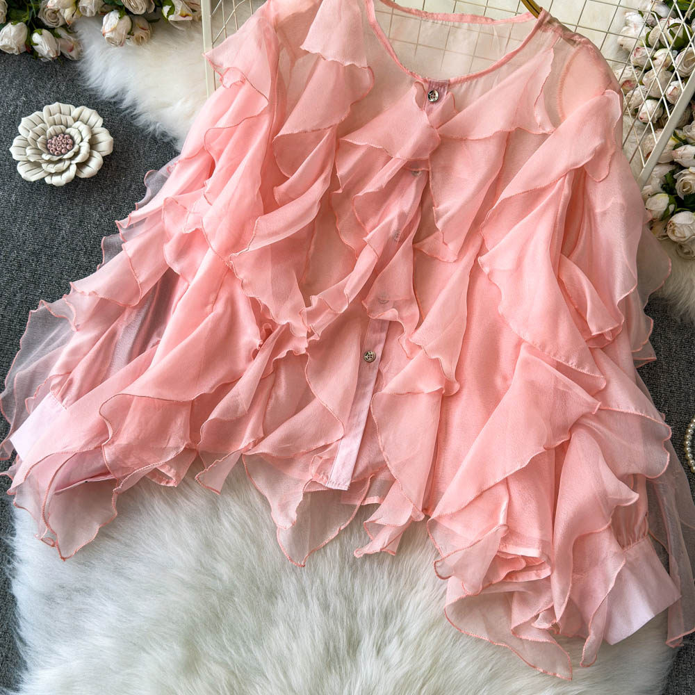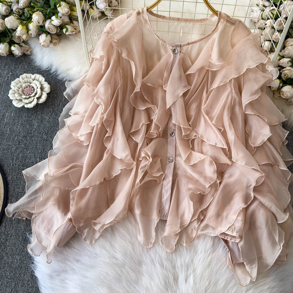 Легкая и тонкая дизайнерская атмосферная шифоновая рубашка, оверсайз, свободный крой, защита от солнца, в корейском стиле