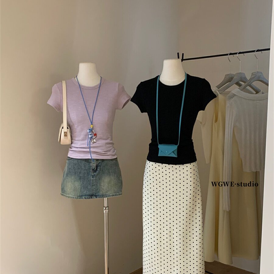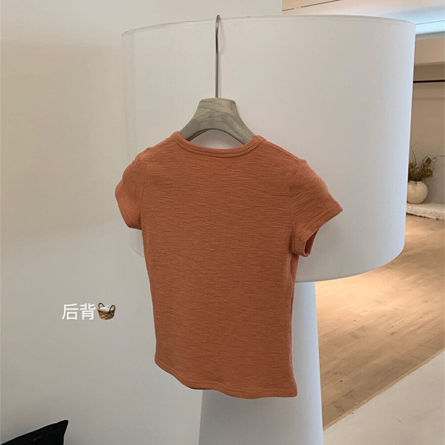 WGWE2025 летняя и корейская версия, универсальная повседневная однотонная базовая хлопковая футболка с пузырьками, облегающая футболка, женские модные топы с короткими рукавами