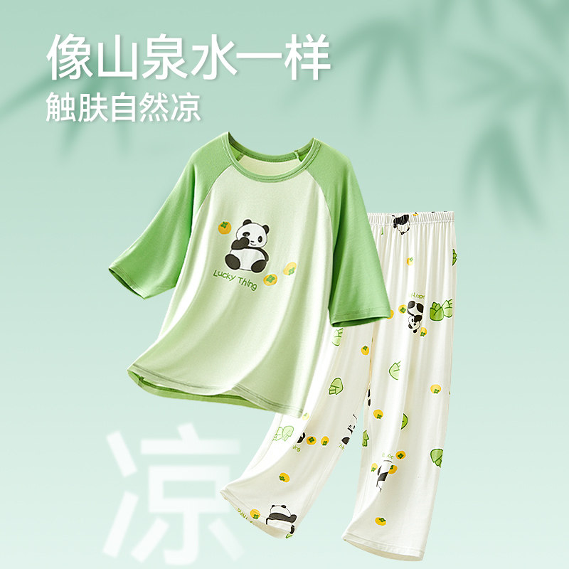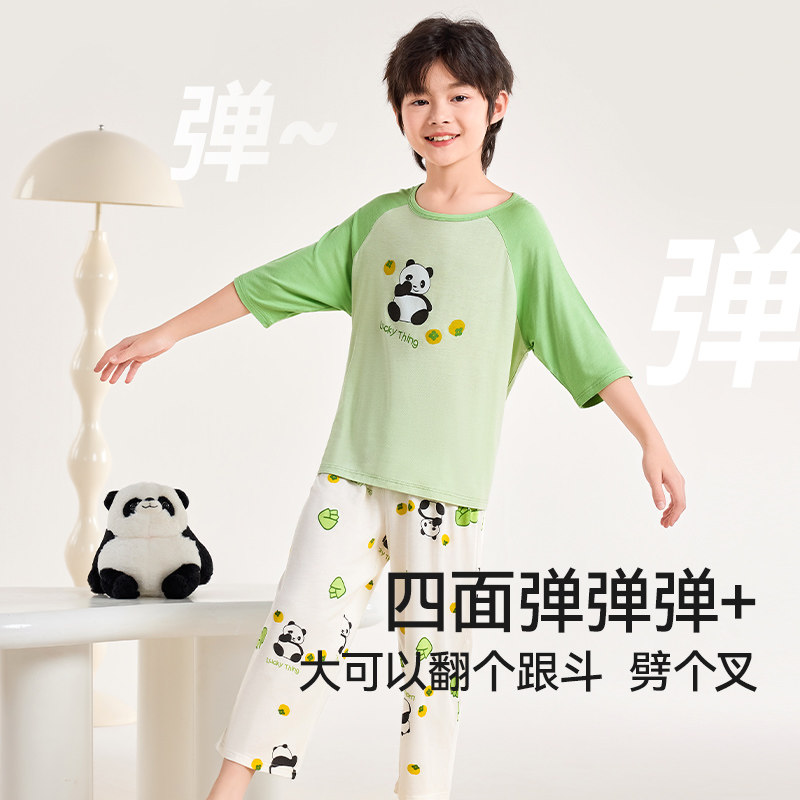 Детская пижама, летний натуральный антибактериальный комплект для мальчиков