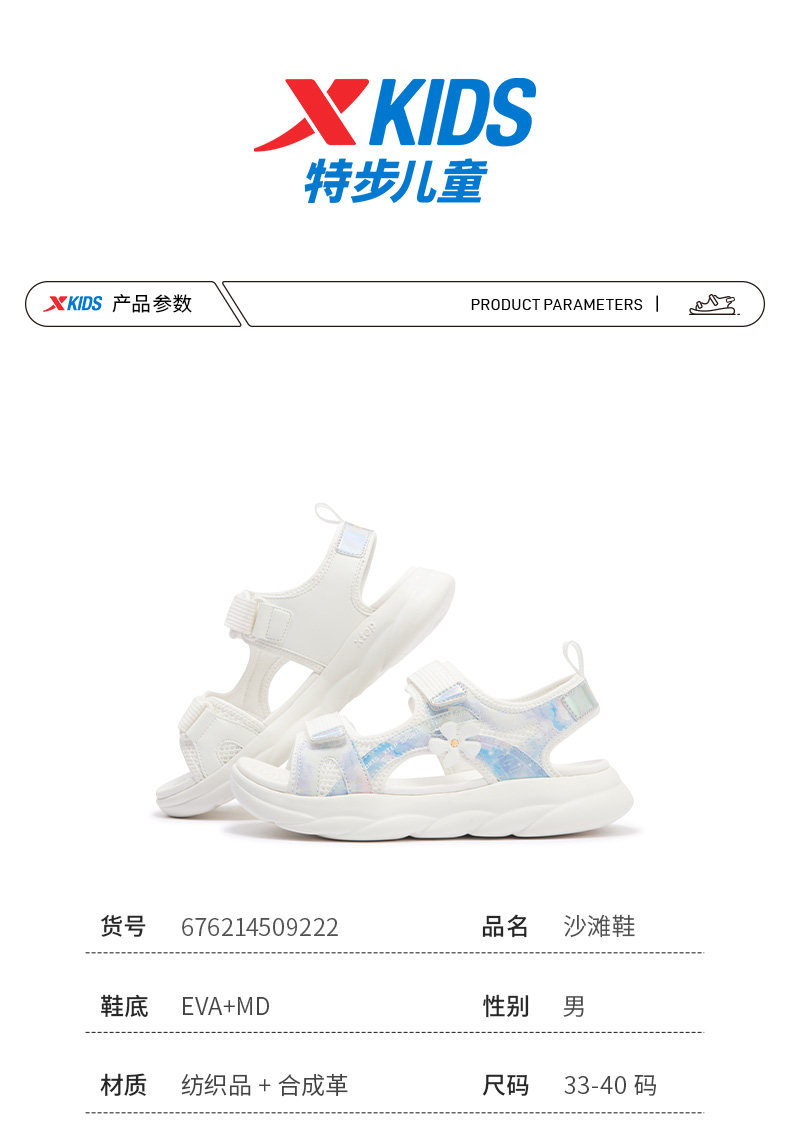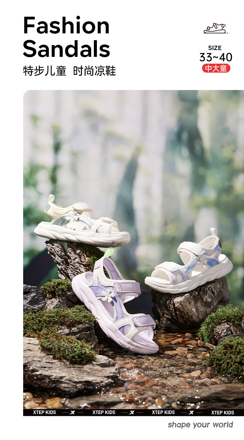 Xtep, дышащая летняя пляжная обувь на липучке, нескользящие износостойкие сандалии, подходит для подростков